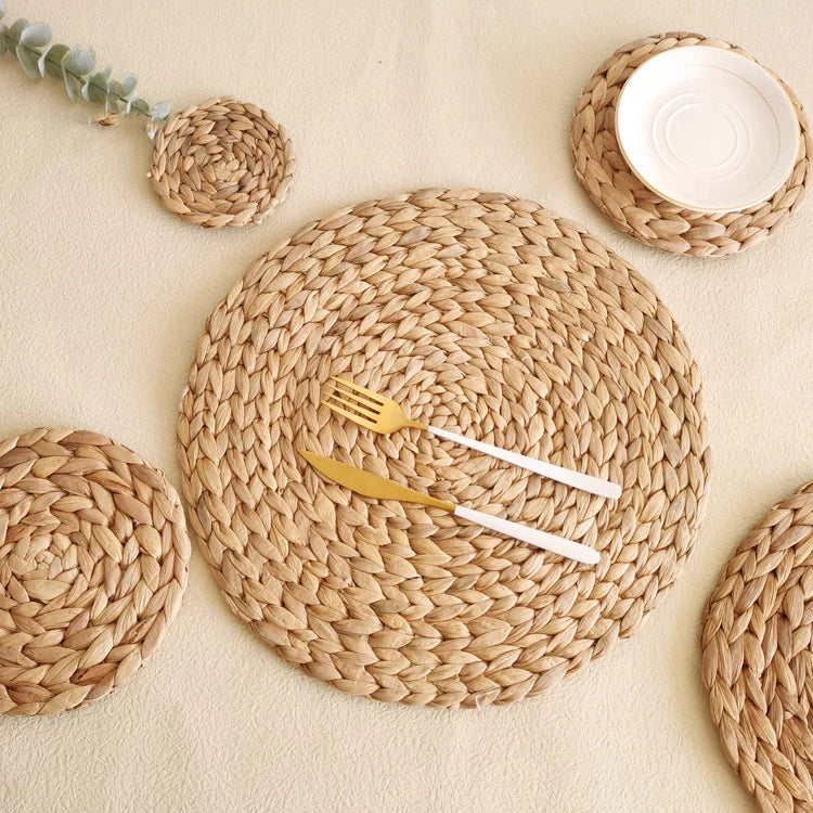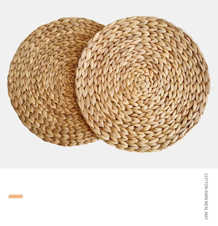 HeMu Natual Straw Weave Rattan Round Placemats Cups Mat Thickened Insulation Mat Dining Table Home Decor Sand Pot Mat