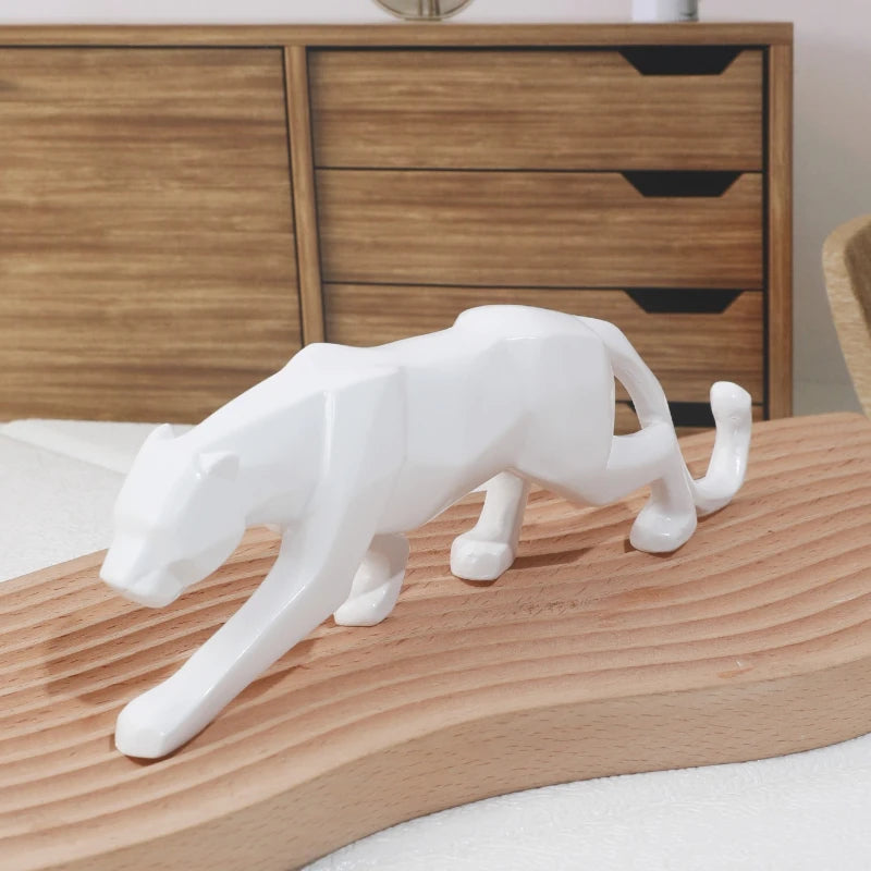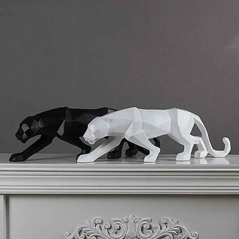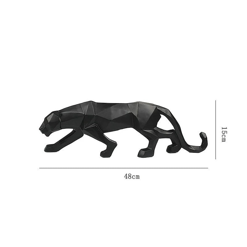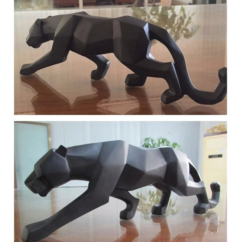 Home Decoration Modern Abstract Black Panther Sculpture Geometric Resin Leopard Statue