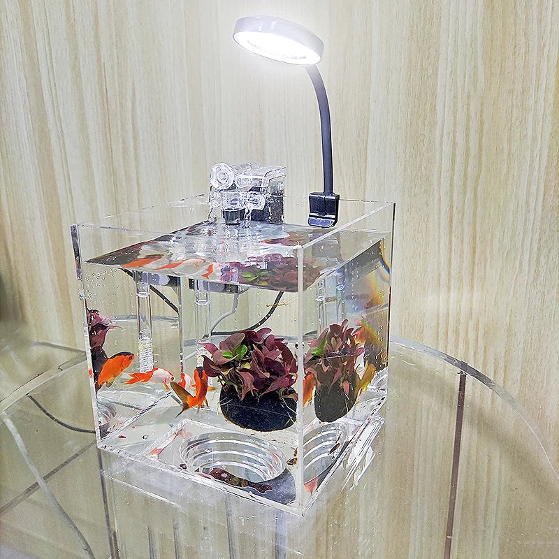 home office desktop transparent acrylic aquarium water grass ecological breeding small water tank, small shrimp, small turtle, s