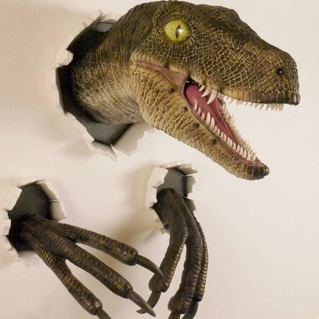 Hot 3D Wall Mounted Dinosaur Sculpture Mounted Resin Dinosaur Decor Prop Bursting Hanging Dinosaur Head with Claws Home Decor