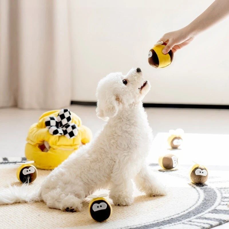 Interactive Dog Sniffing Toy Bee Hive Puzzle Feeder Chew Plush Toy for Small Dogs Cats Food Dispensing Enrichment Toy Pet Play