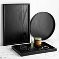 Japanese Kitchen Storage Tray Household Wooden Tea Tray Home Decoration Cosmetic Storage Tray Coffee Snack Tray Bread Round Tray