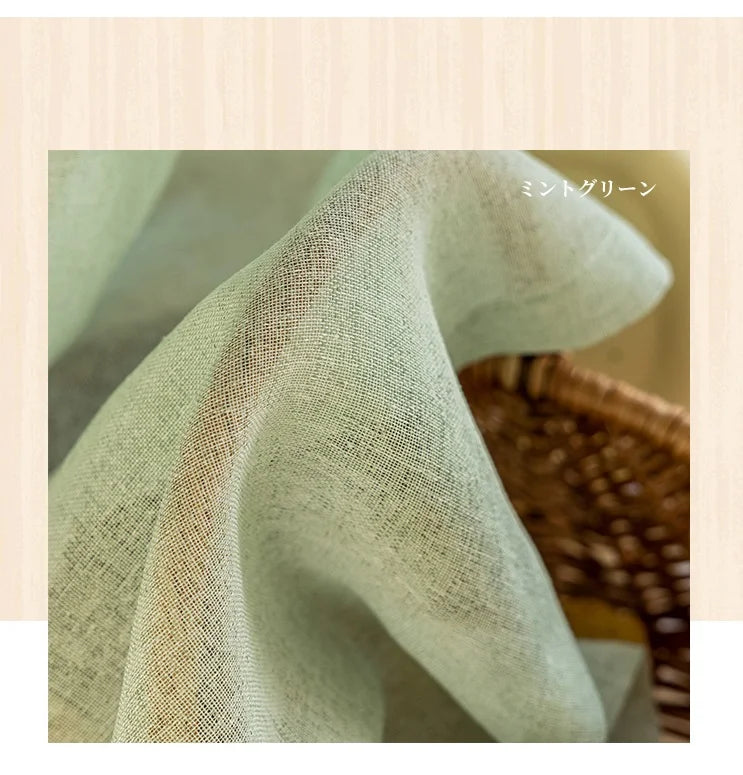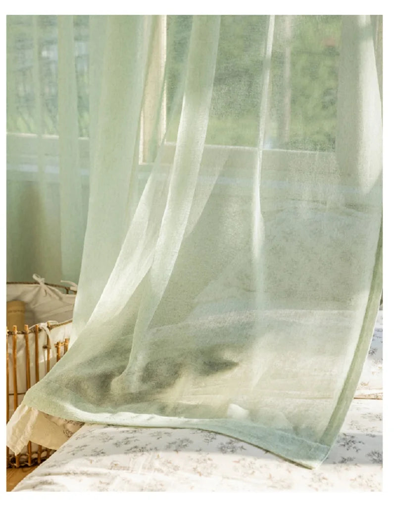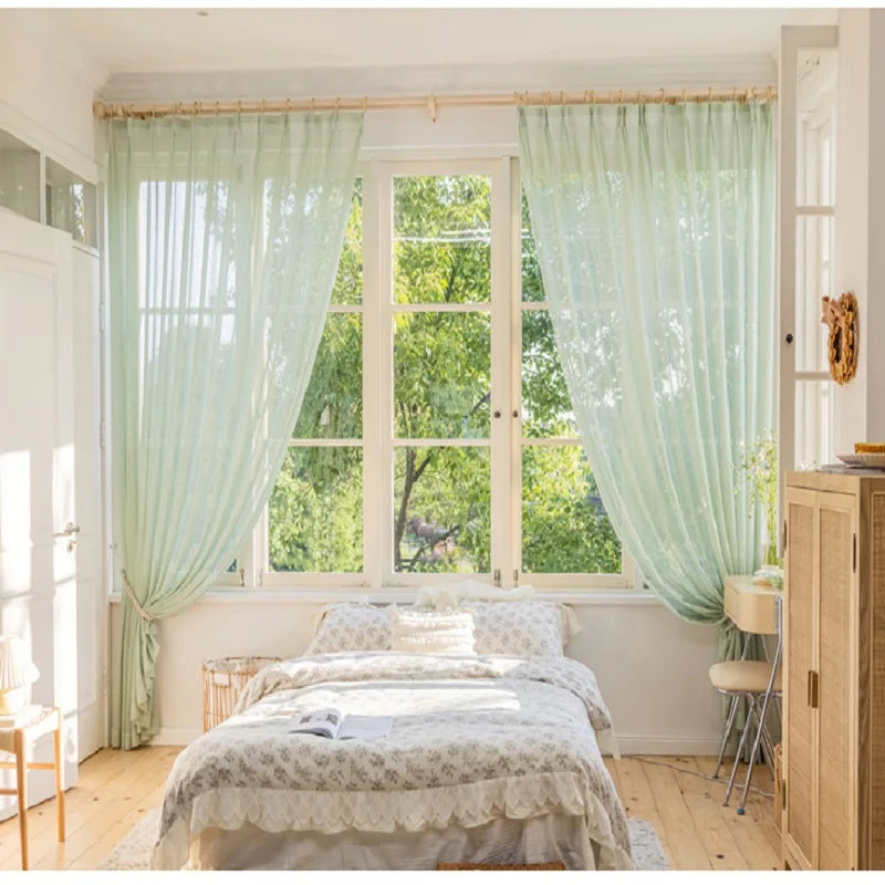 Japanese mint green curtains gauze simple style fresh artistic translucent shutter yarn living room bedroom custom curtain size