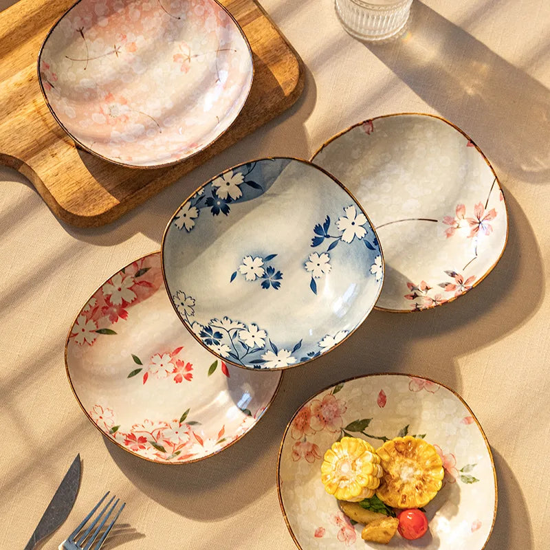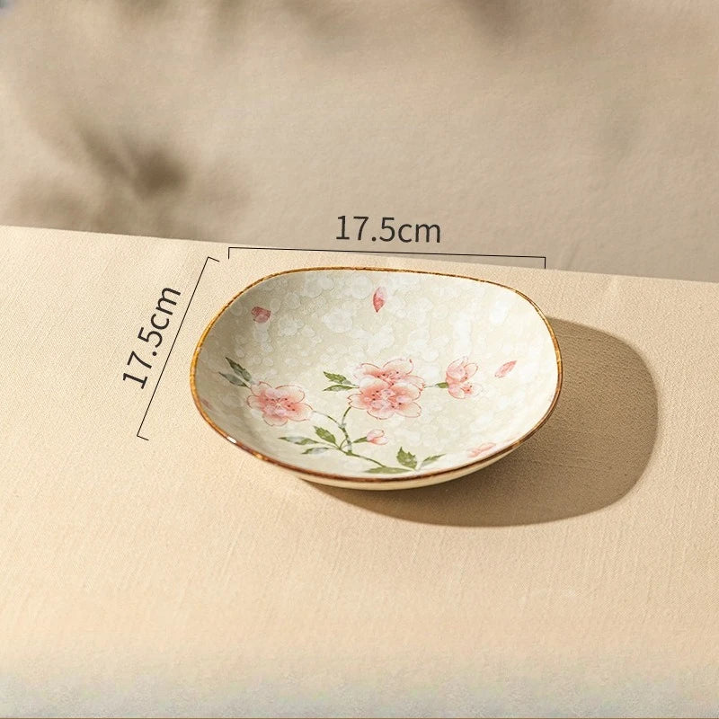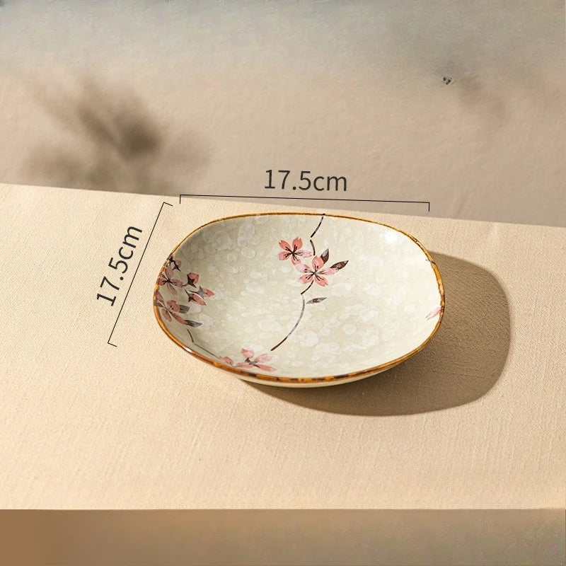 Japanese Square Plate Ceramic Plate Dish Dish Household Plate Tableware Deep Rice Bowl Tableware