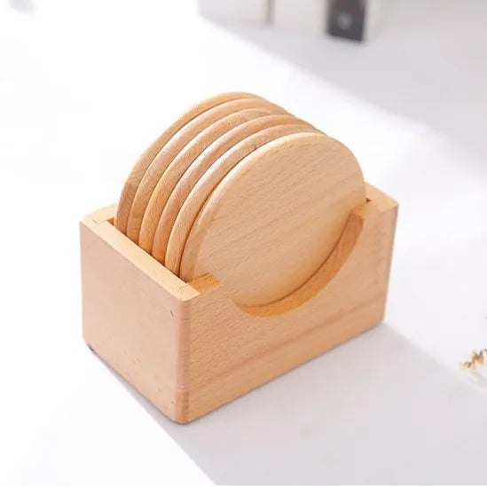 Japanese-style European-style wooden ash wood round coaster set for heat insulation tea set accessories coffee cup holder