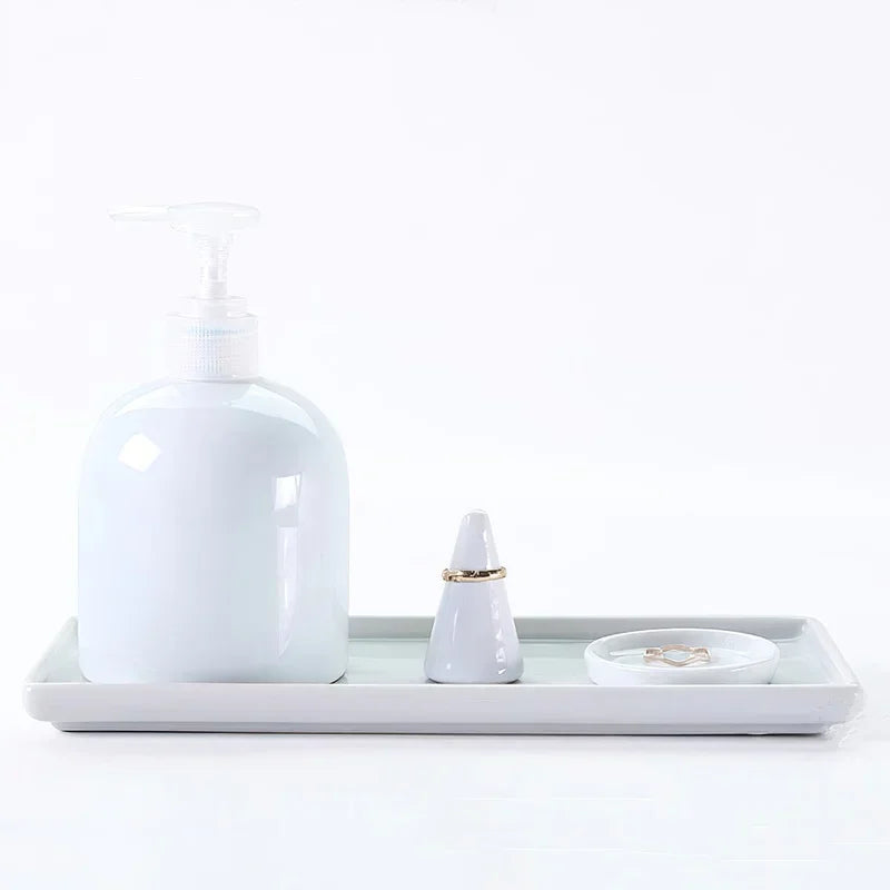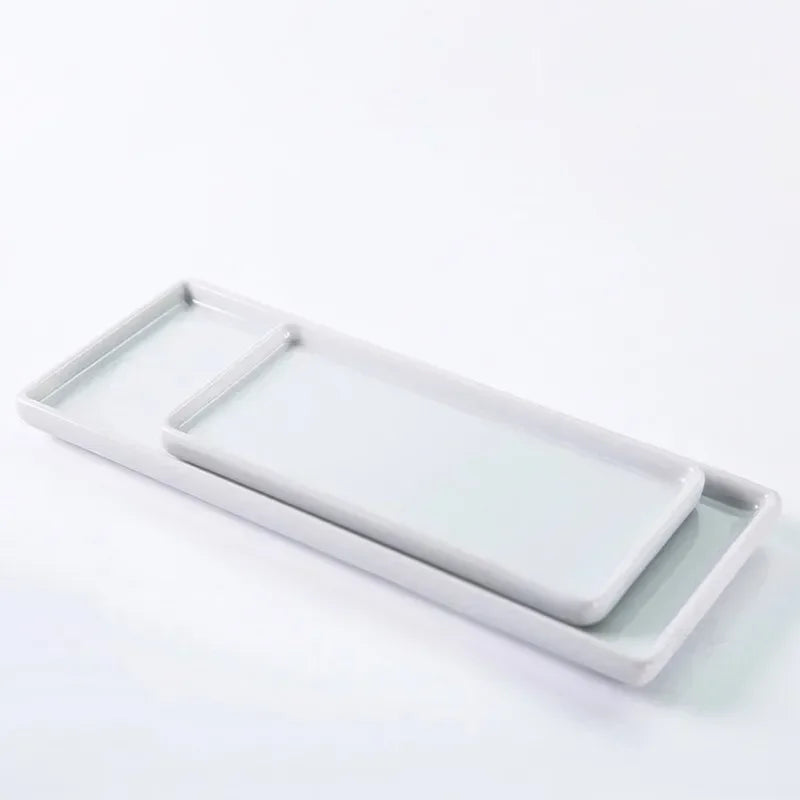 Japanese-style Rectangular Ceramic Tray Plate White Porcelain Rectangular Plate Mouthwash Cup Tray Bathroom Living Storage Tray