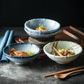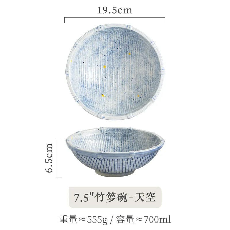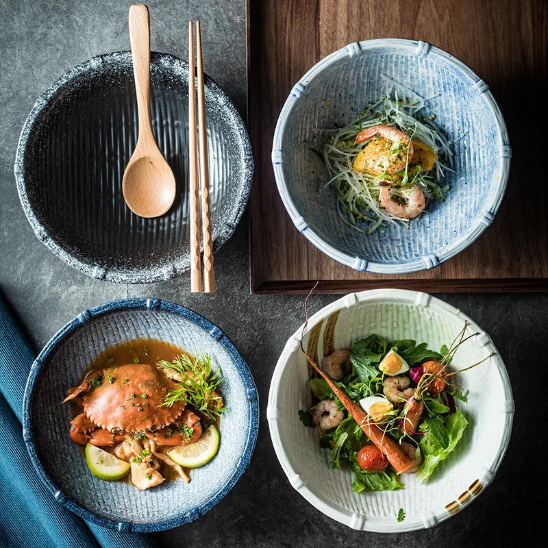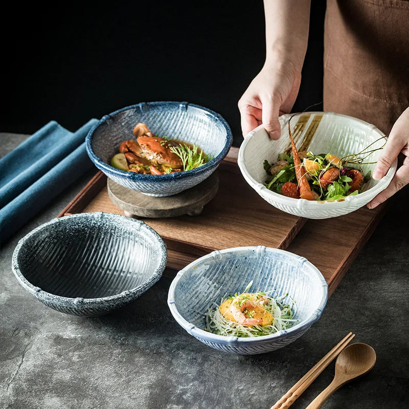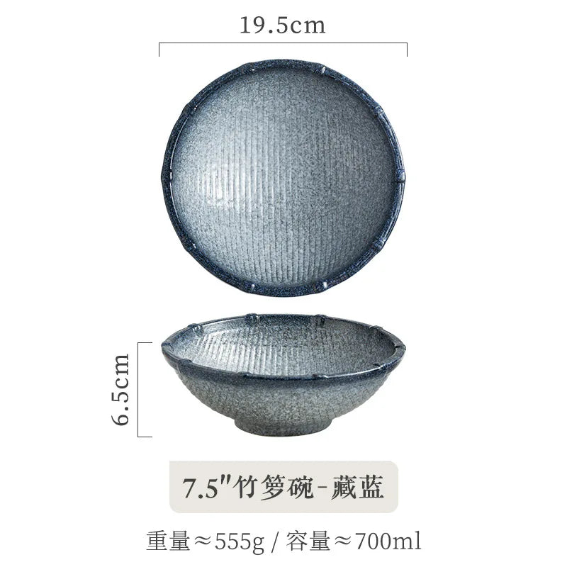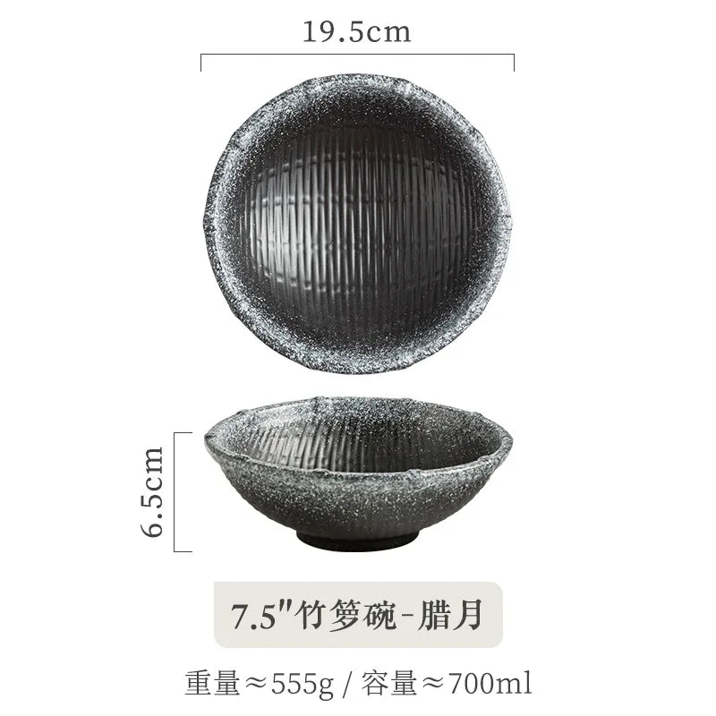 Japanese Style Tableware Set Bamboo Bowl Rib Retro Domestic Restaurant Table Salad Ceramic Rice Bowl