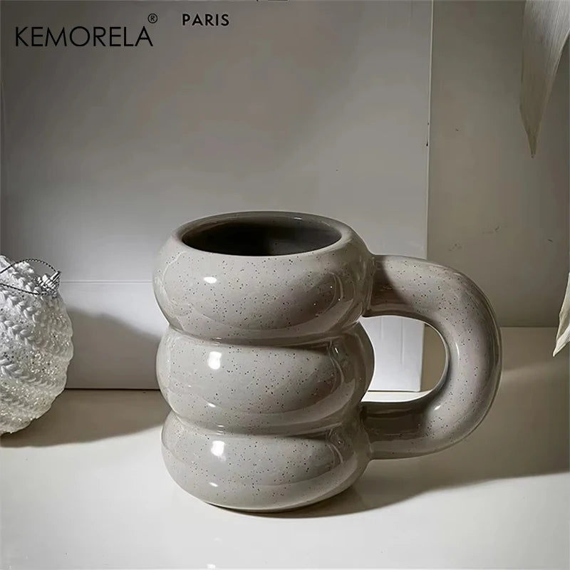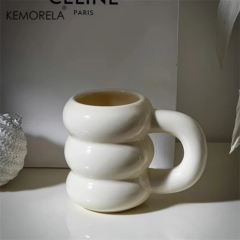 KEMORELA 420ML Cute Donut Ceramic Mug With Handle Nordic Style Creative Large Capacity Coffee Cup Simple Couple Water Cup Gift