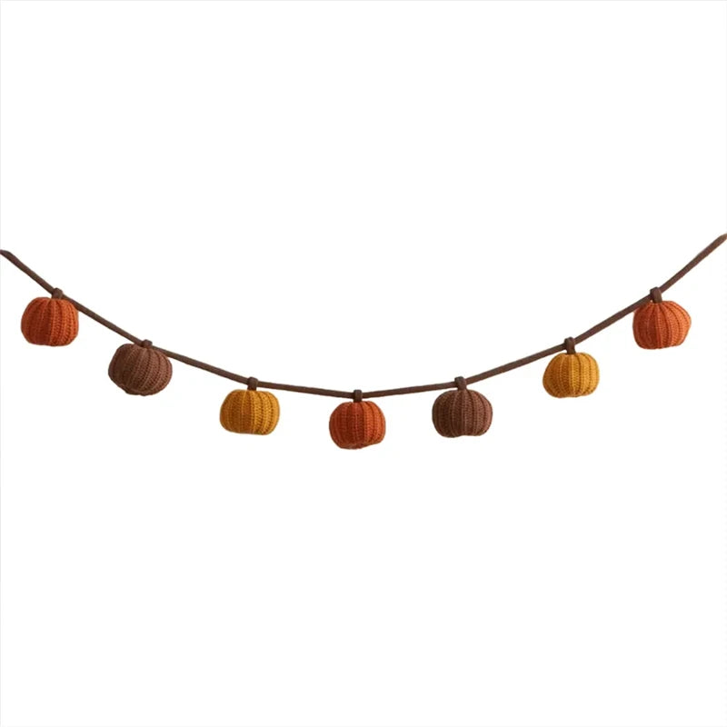 Knit Pumpkin Garland for Mantel Halloween Autumn Mantel Bookshelf Decoration Holiday Party Accessories Baby Shower Birthday Gift