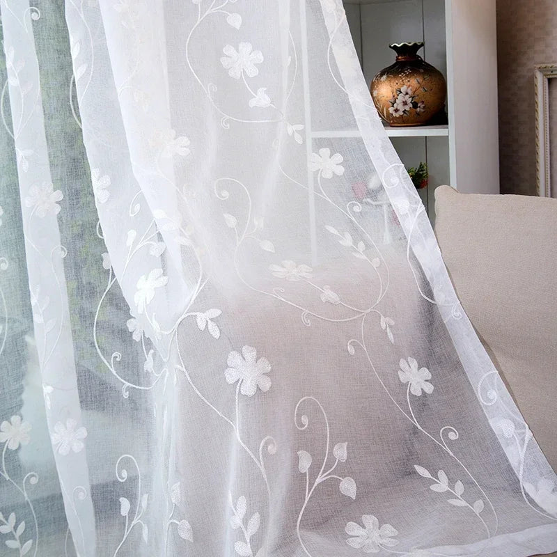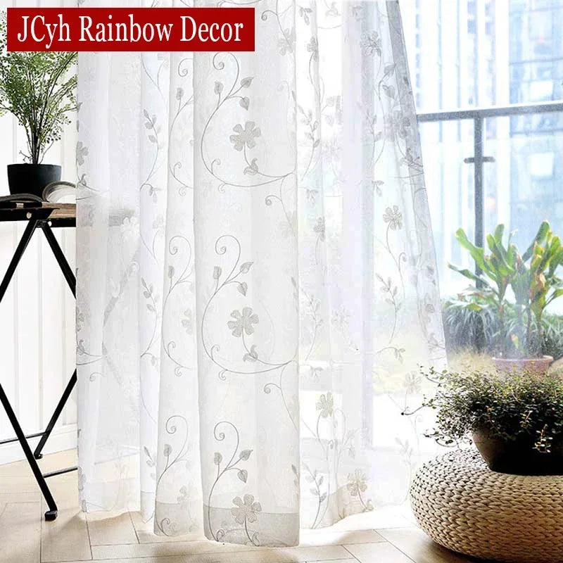 Korean White Embroidered Voile Curtains For Bedroom Window Curtain For Living Room Sheer Curtains Blinds Custom Made Drapes