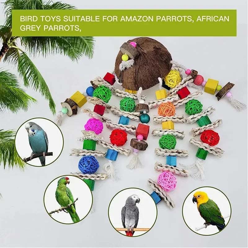 Large Parrot Nibbling Toy in Parrot Toys Coconut Shell Sichuan Pepper Wood Corn Vine Ball Bird Skewer Toy Bird Accessories