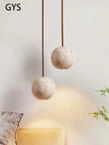 Led Pendant Lamp Stone Yellow Travertine Chandelier Bedside Small Round Light Nordic Bedroom Creative Hanging Line Lighting
