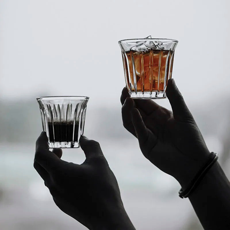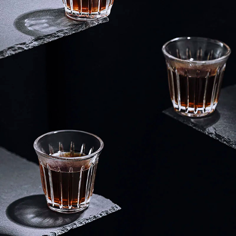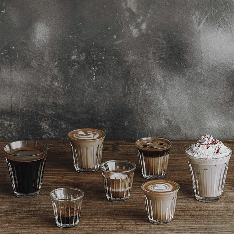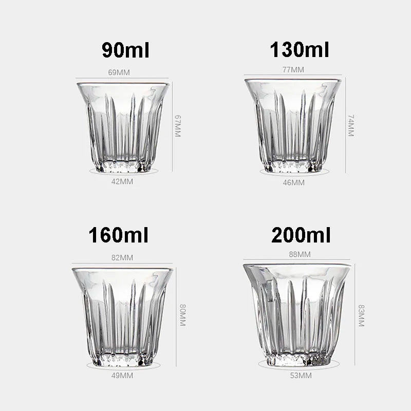 Leeseph Coffee Cup Clear Espresso Stripes Glass Cup Wide Mouth Mocha Hot Beverage Mug Drinking for Latte Cappuccino Tea Cafe