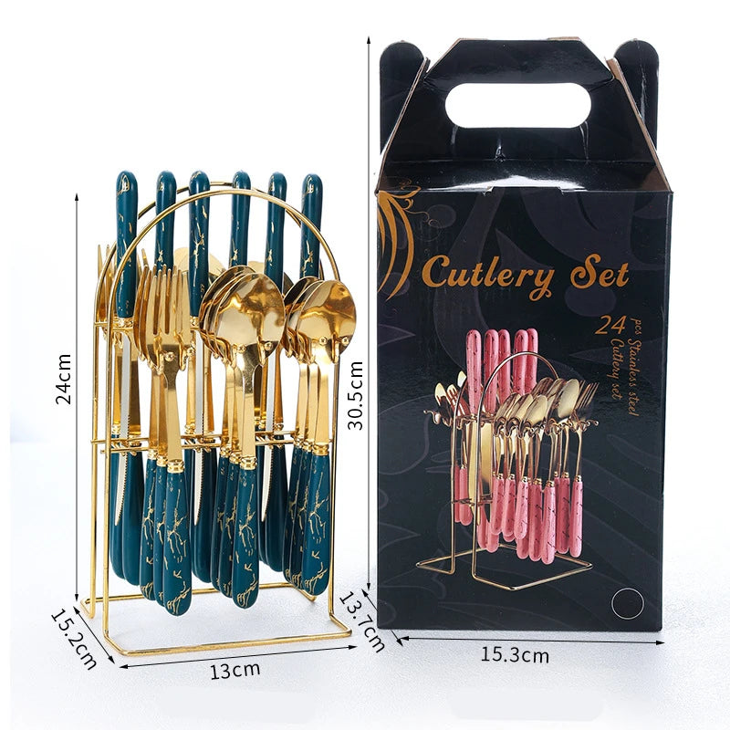 LMETJMA 24 Pcs Flatware Set Stainless Steel Knives Forks Spoons Cutlery Set Service for 6 Kitchen Utensil Tableware Set JT378