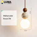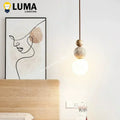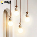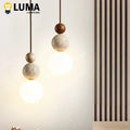 Luma Cream Style Yellow Travertine Pendant Lights, Nature Stone Wood Hanging Lamps for Bedroom Bedside Restaurant Kitchen Island