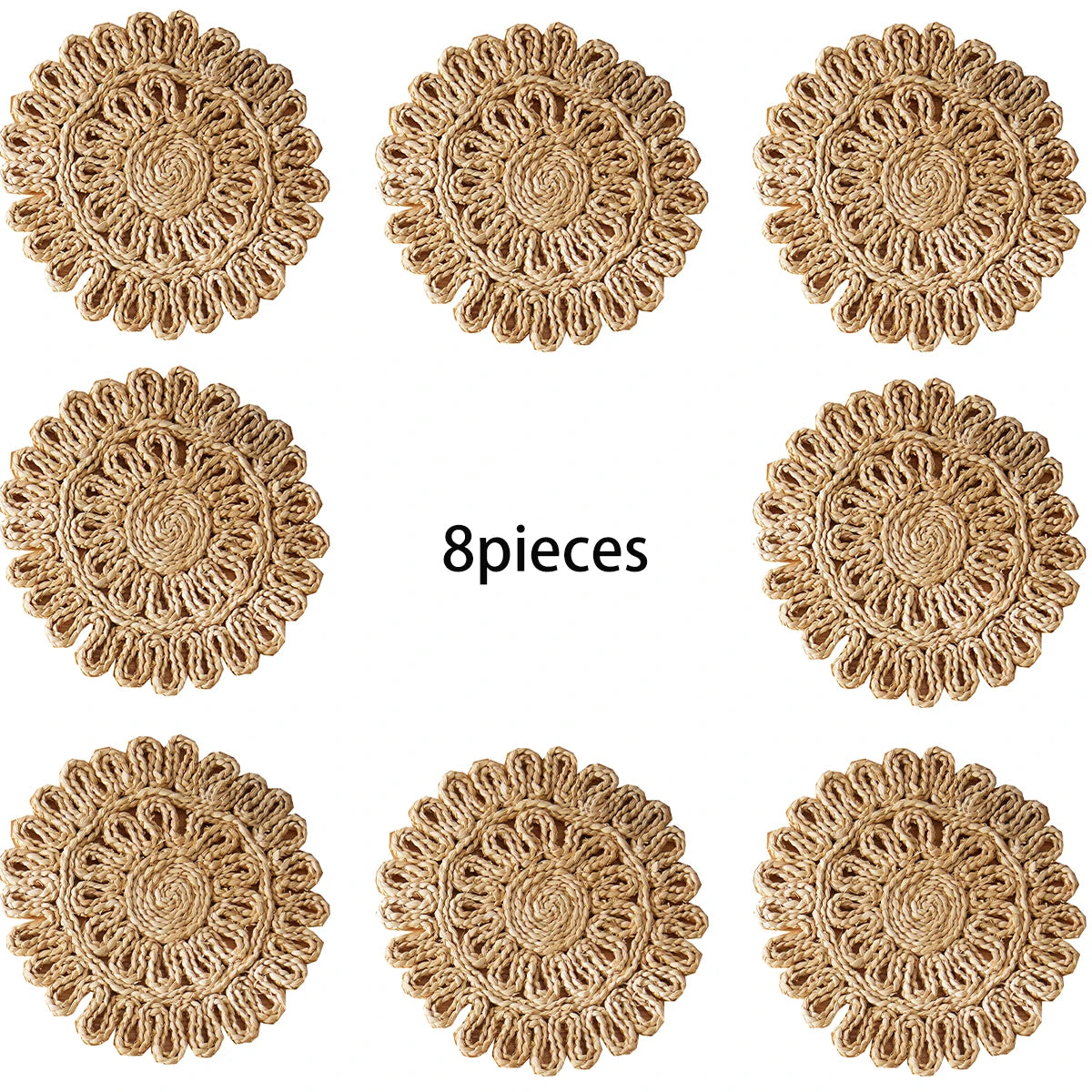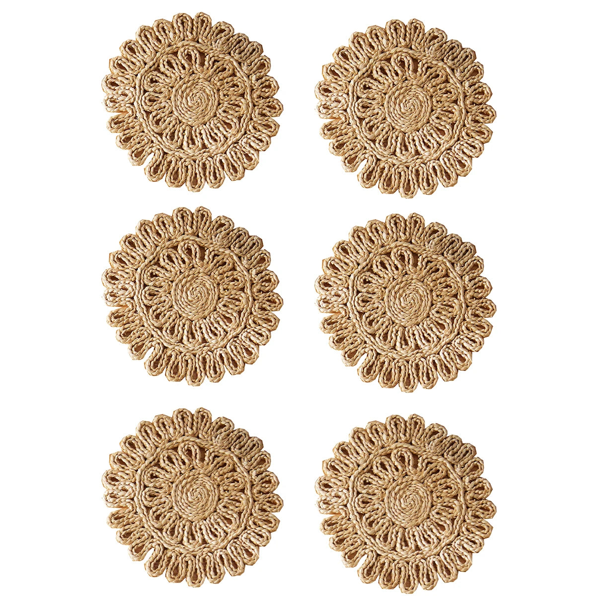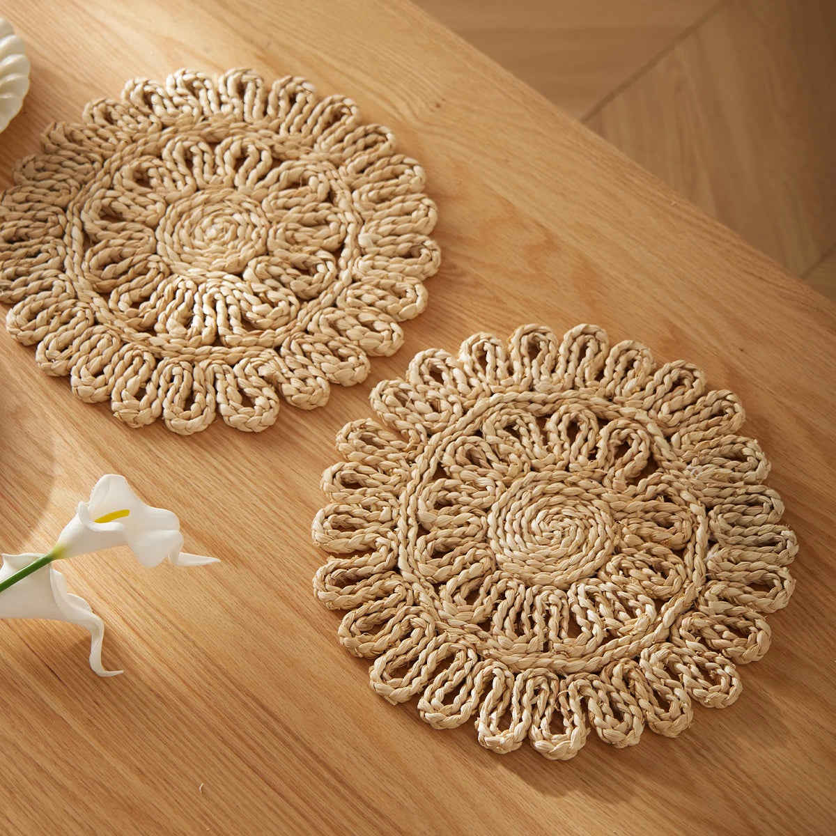 Macrame Table Decor Handmade Boho Placemats Set Natural Corn Cusk Straw Woven Combination Table Mats for Dining Table Kitchen