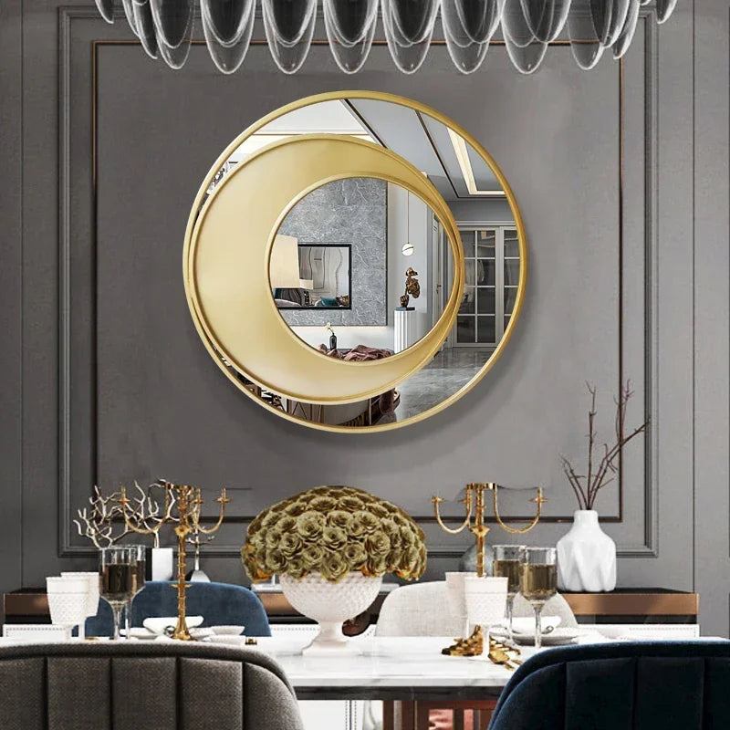 Makeup Gold Mirror Bathroom Metal Frame Design Round Wall Mirror Creative Modern Dekoracyjne Lustra Decoration Living Room