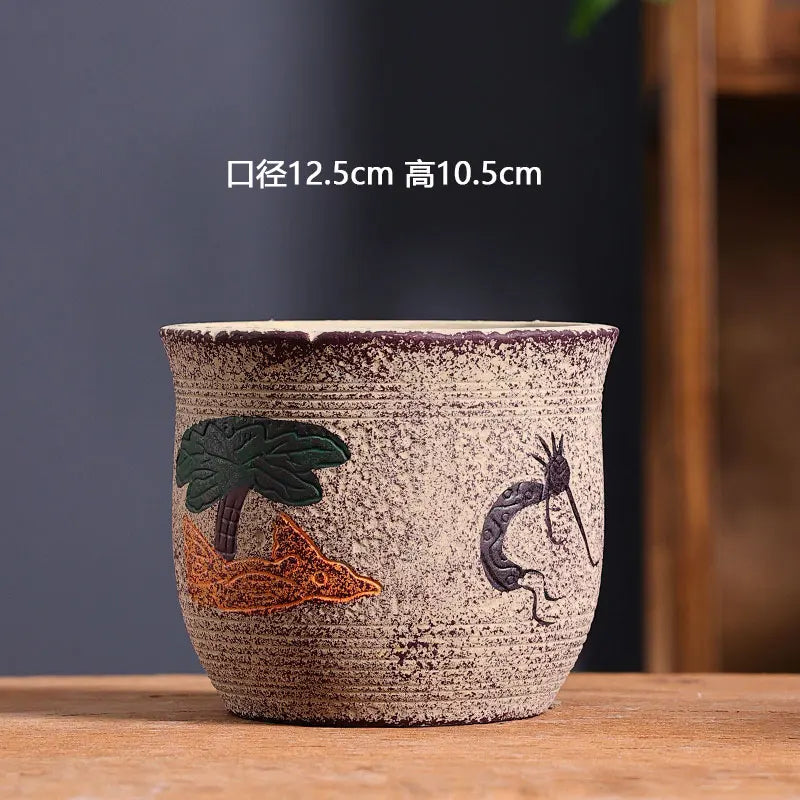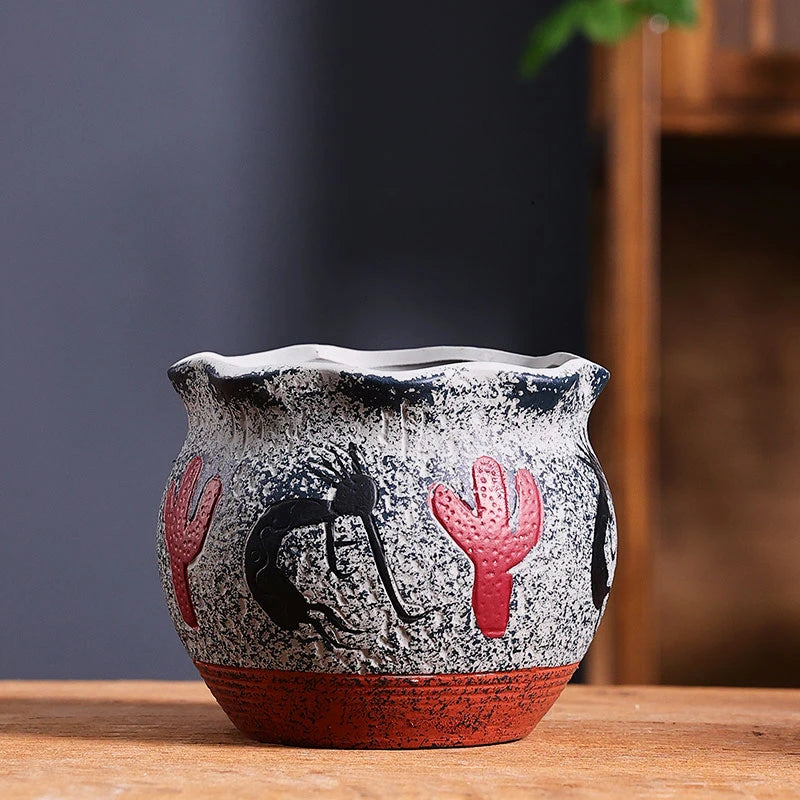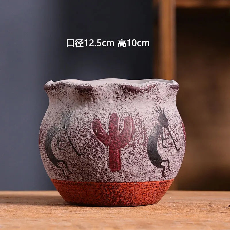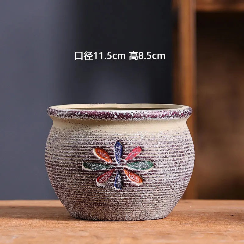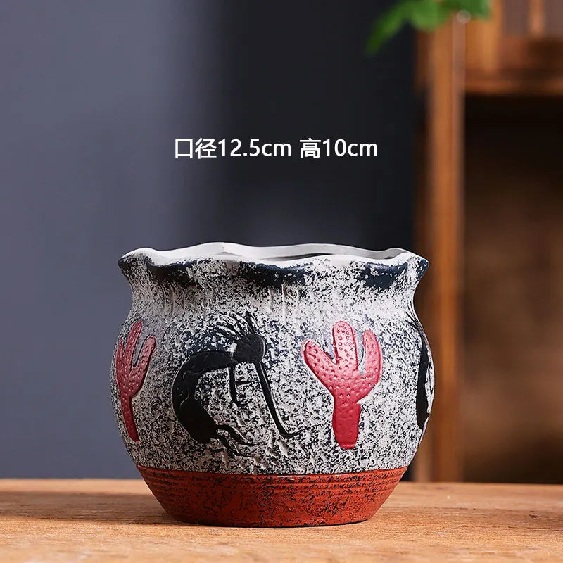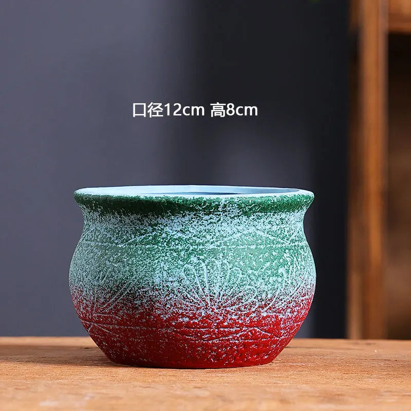 Mediterranean Succulent Flower Pot Large Diameter Red Ceramic Old Pile Basin Retro Household Use
