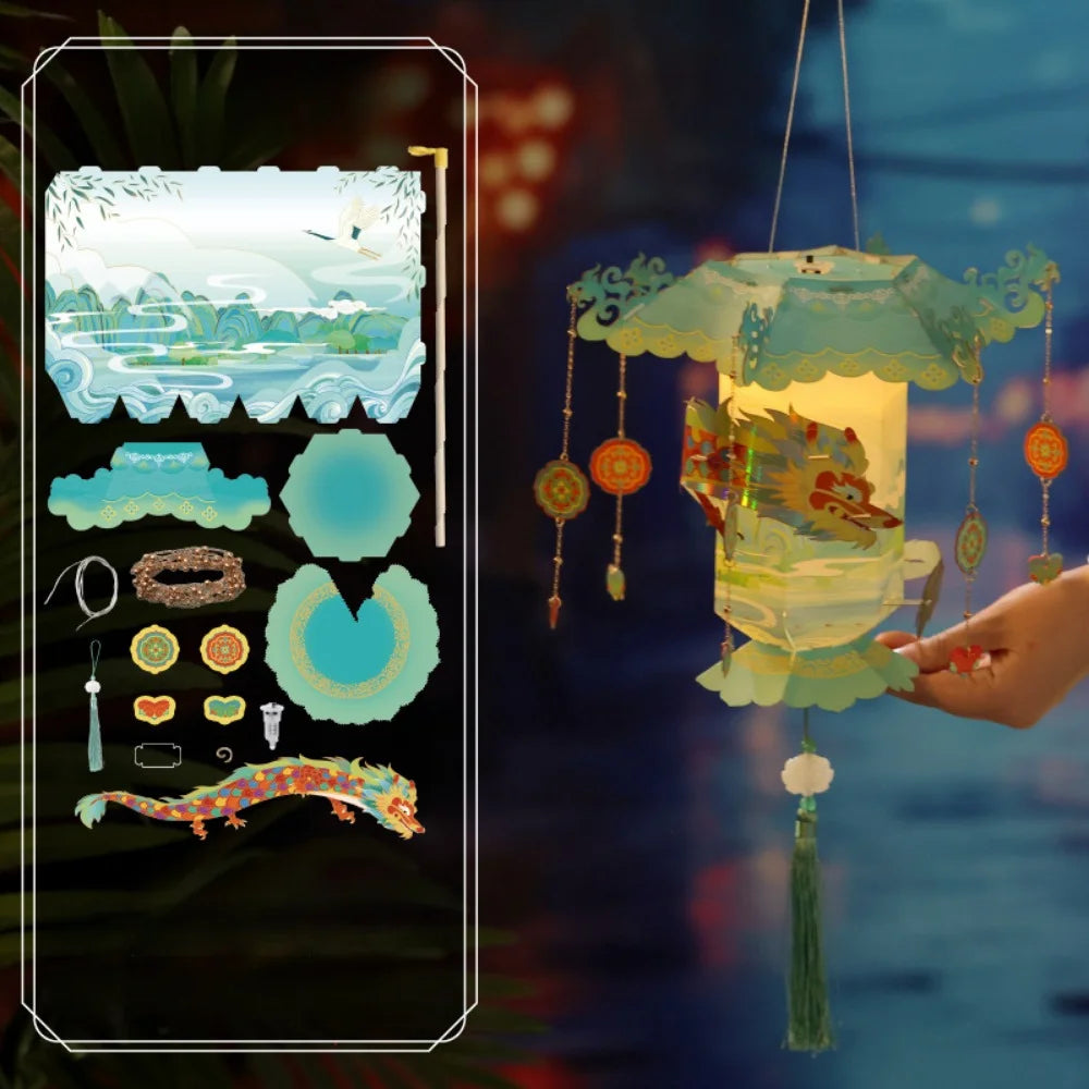 Mid-Autumn Lantern Diy Portable Luminous Dragon Palace Lantern Handmade Toy Lantern Festival Decoration Props