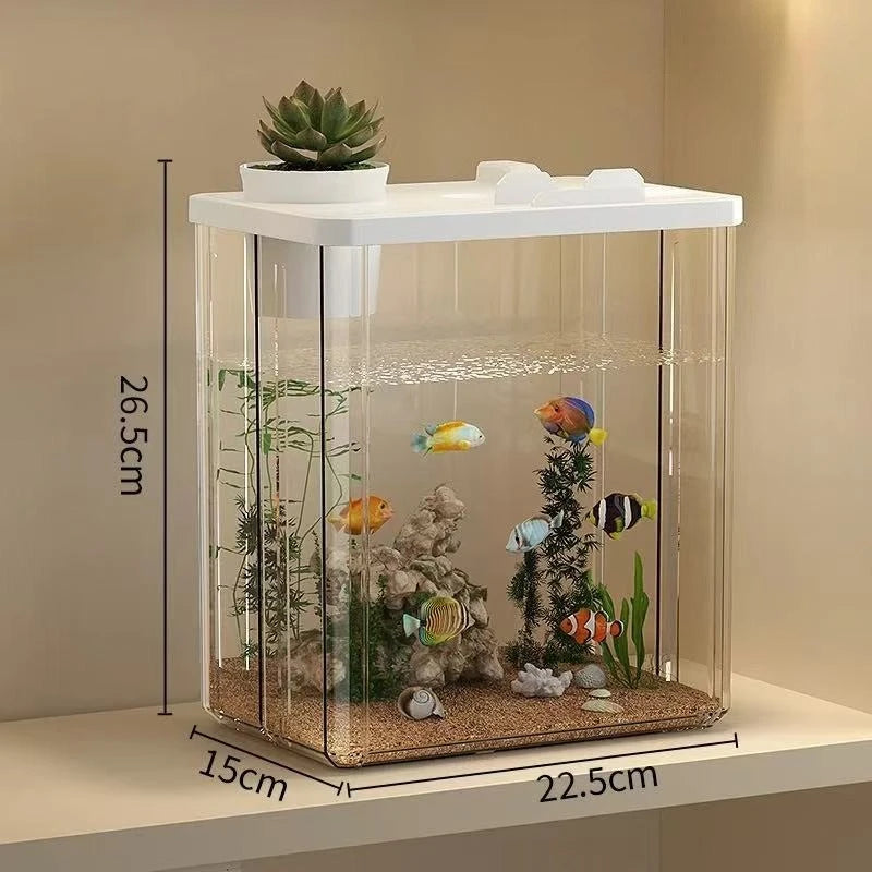 Mini Fish Tank Aquarium Starter Desktop Rectangular Fish Tank With Pump Water Plants Fish Bowl Tabletop Box Hatching Incubator