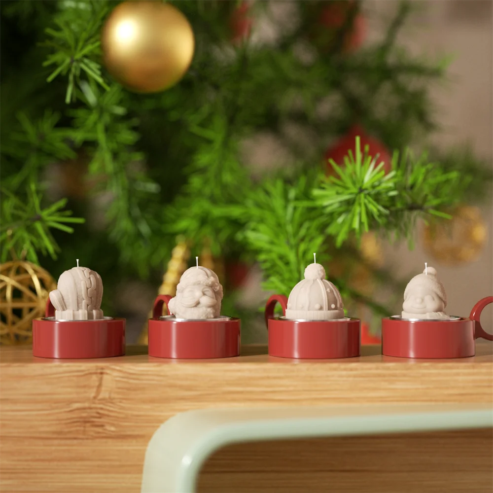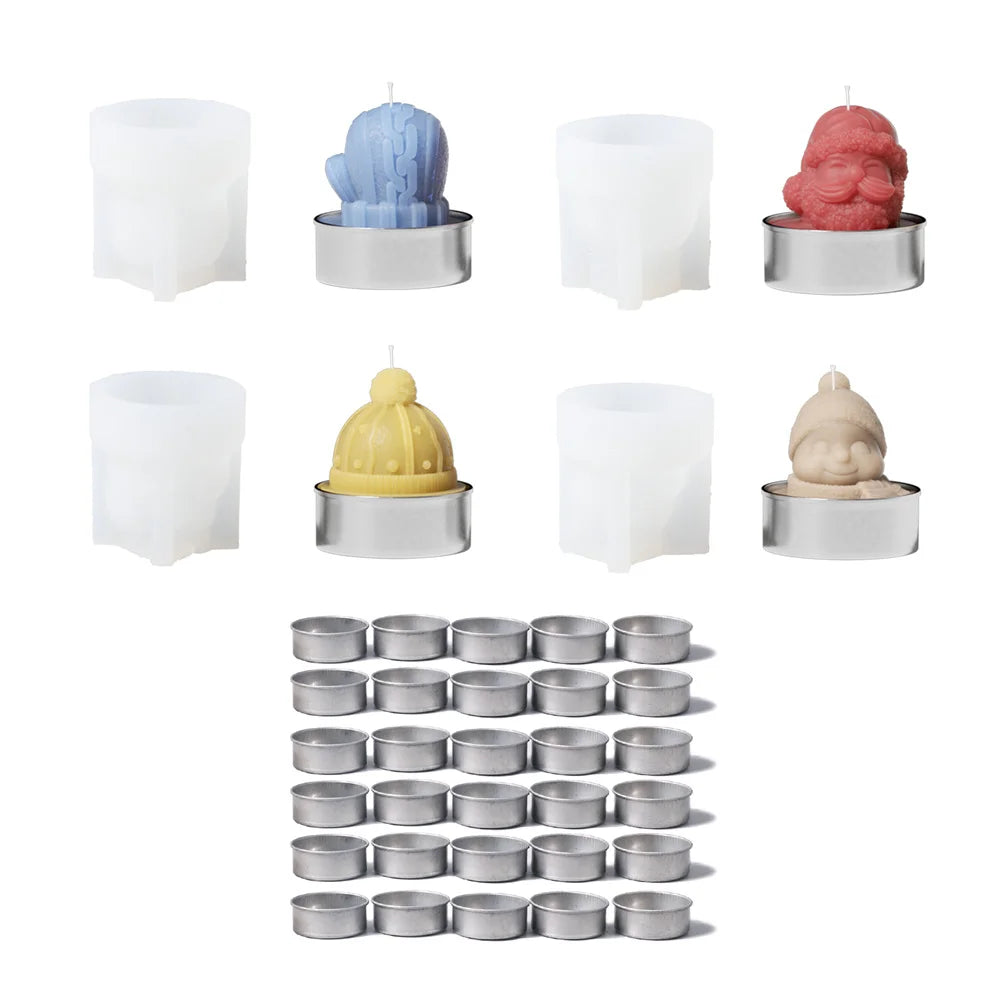 Mini Jolly Winter Characters Tealight Candle Mold 3D Christmas Silicone Mould DIY Handmade Candle Making Supplies