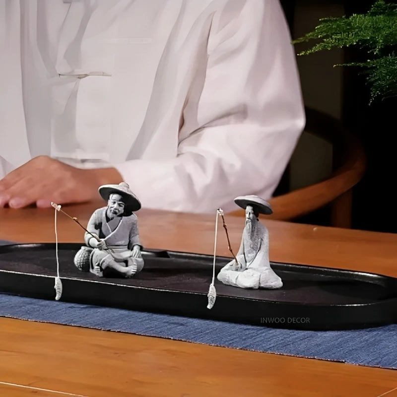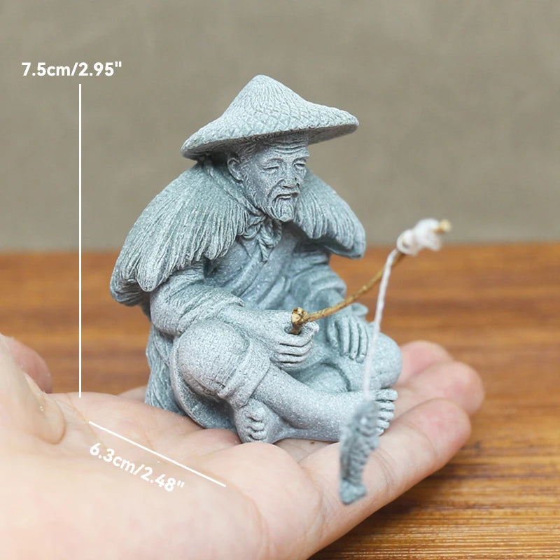 Miniature Zen Fisherman Play Chess Elder Sand Stones Figurine Garden Bonsai Rockery Aquariums Ornaments Lanscape Room Decoration