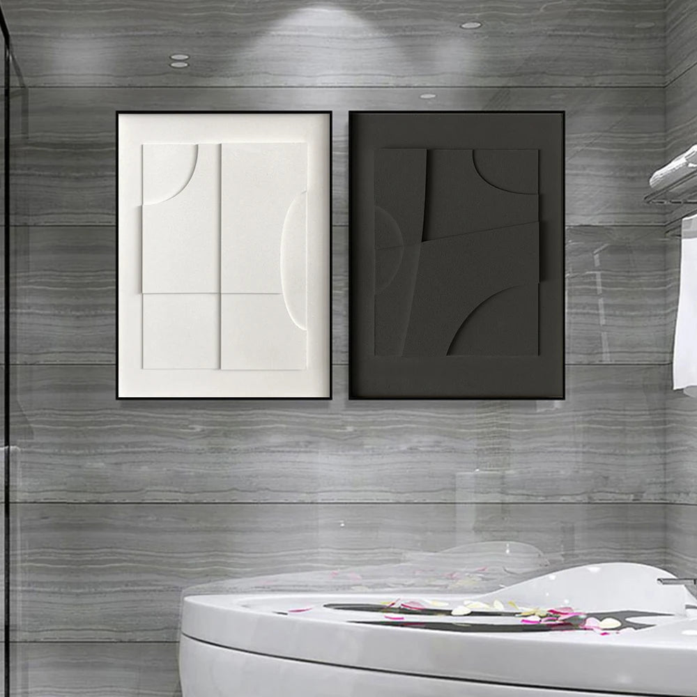 Modern Black White Nordic 3D Visual Effect Geometric Canvas Painting Wall Art Abstract Lines Poster Print Living Room Home Decor