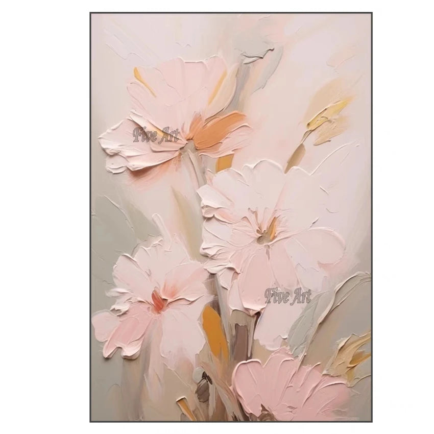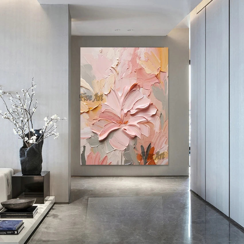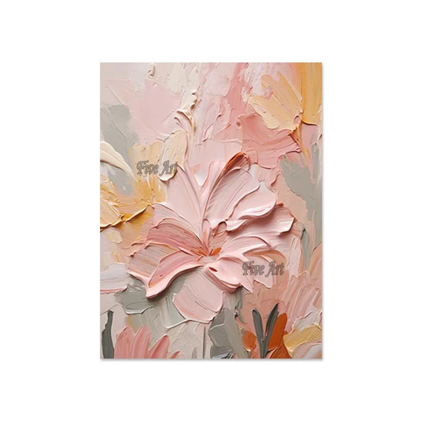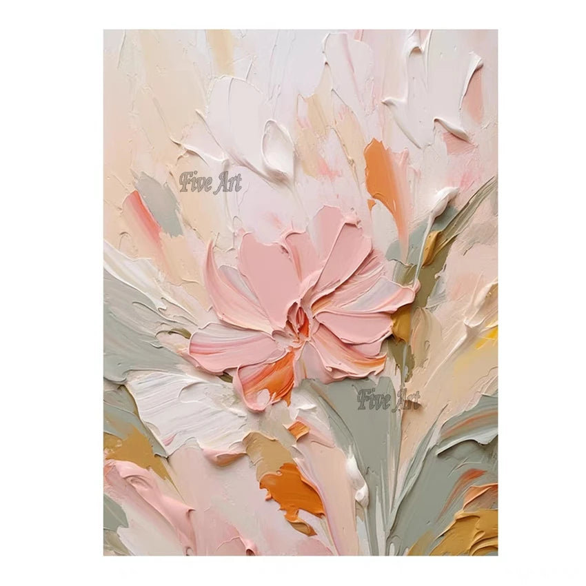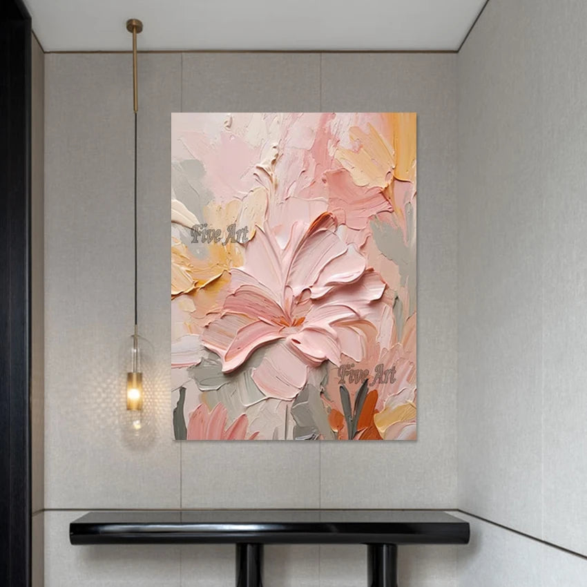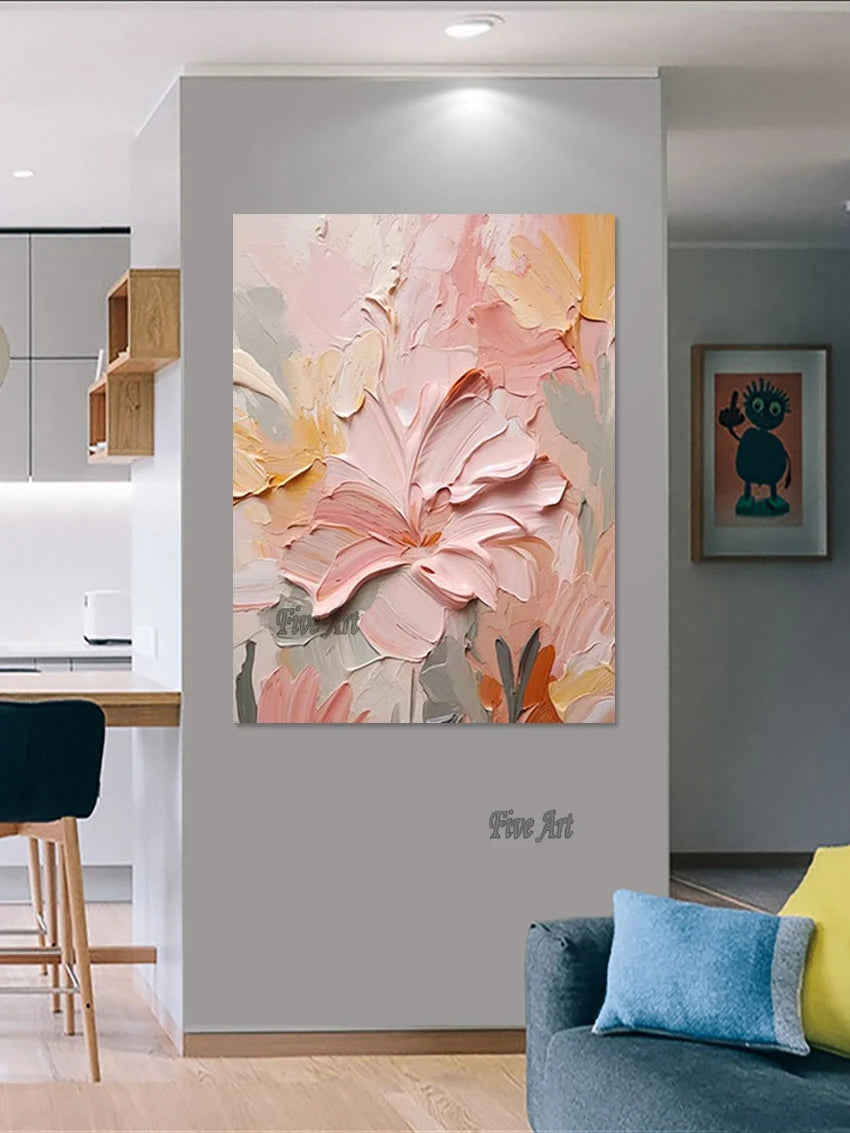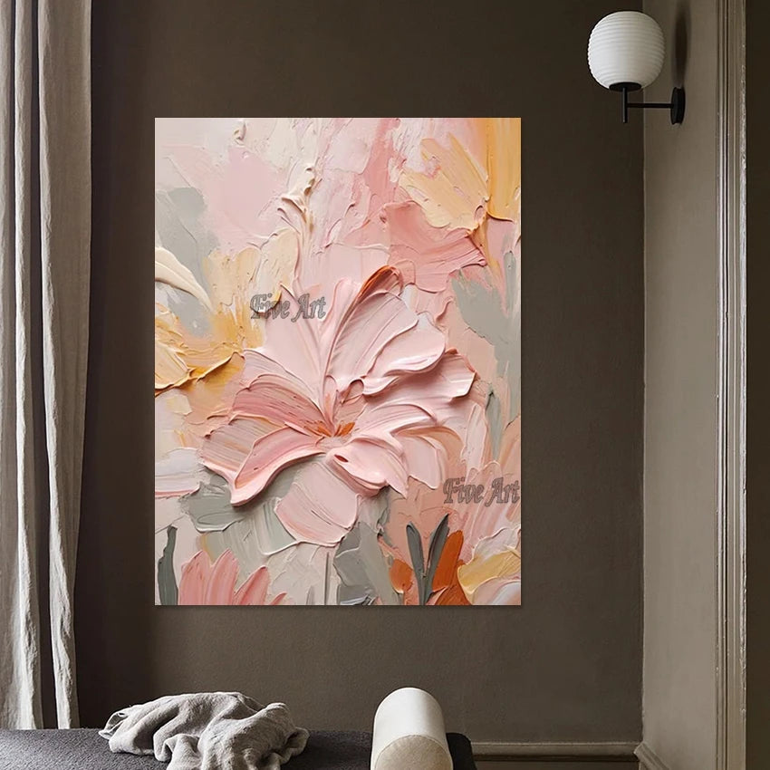 Modern Canvas Art Pink Simple Abstract With Heavy Texture Oil Painting Wall Picture For Restaurant Home Decoration Unframed
