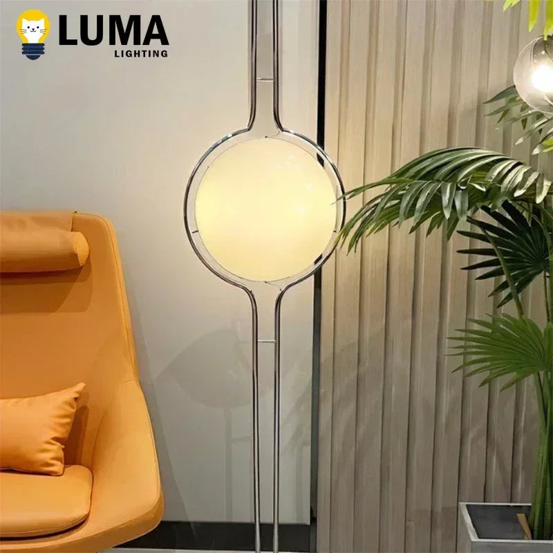 Modern Designer Chrome Floor Lamp with White Acrylic Ball Shade Modern LED Standing Light for Living Room Bedroom Bedside Decor