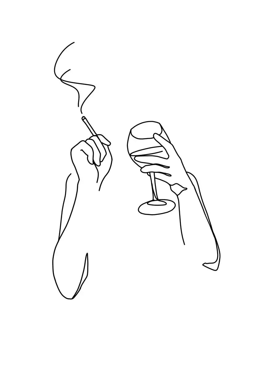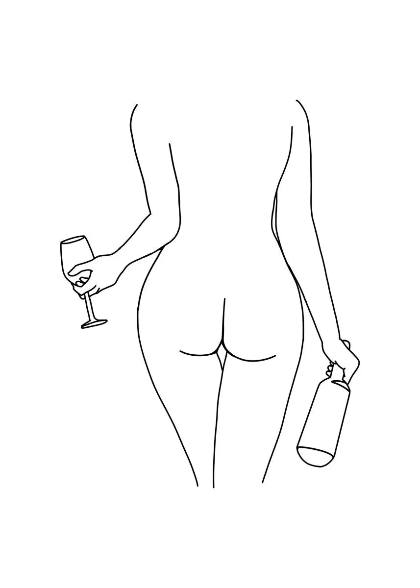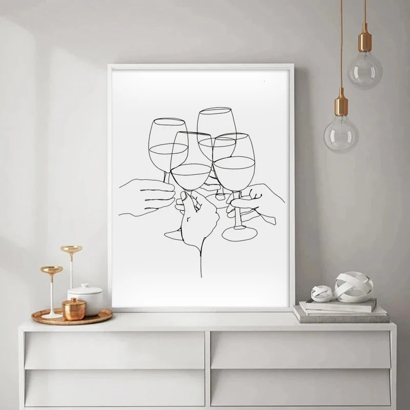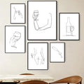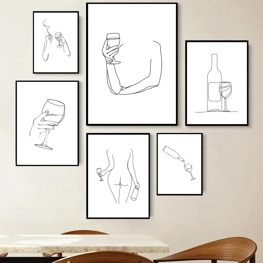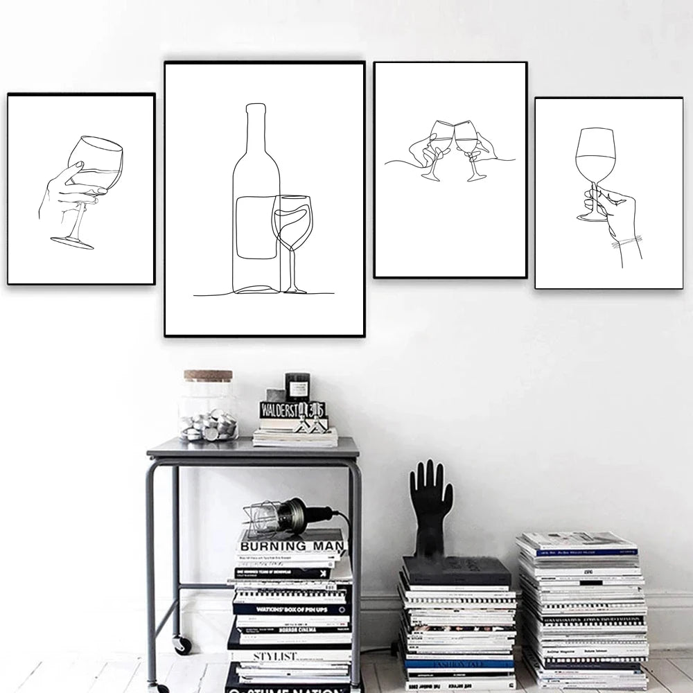 Modern Simple Abstract Black and White Lines Red Wine Glass Woman Poster Canvas Printing for Home Room Wall Frameless Painting