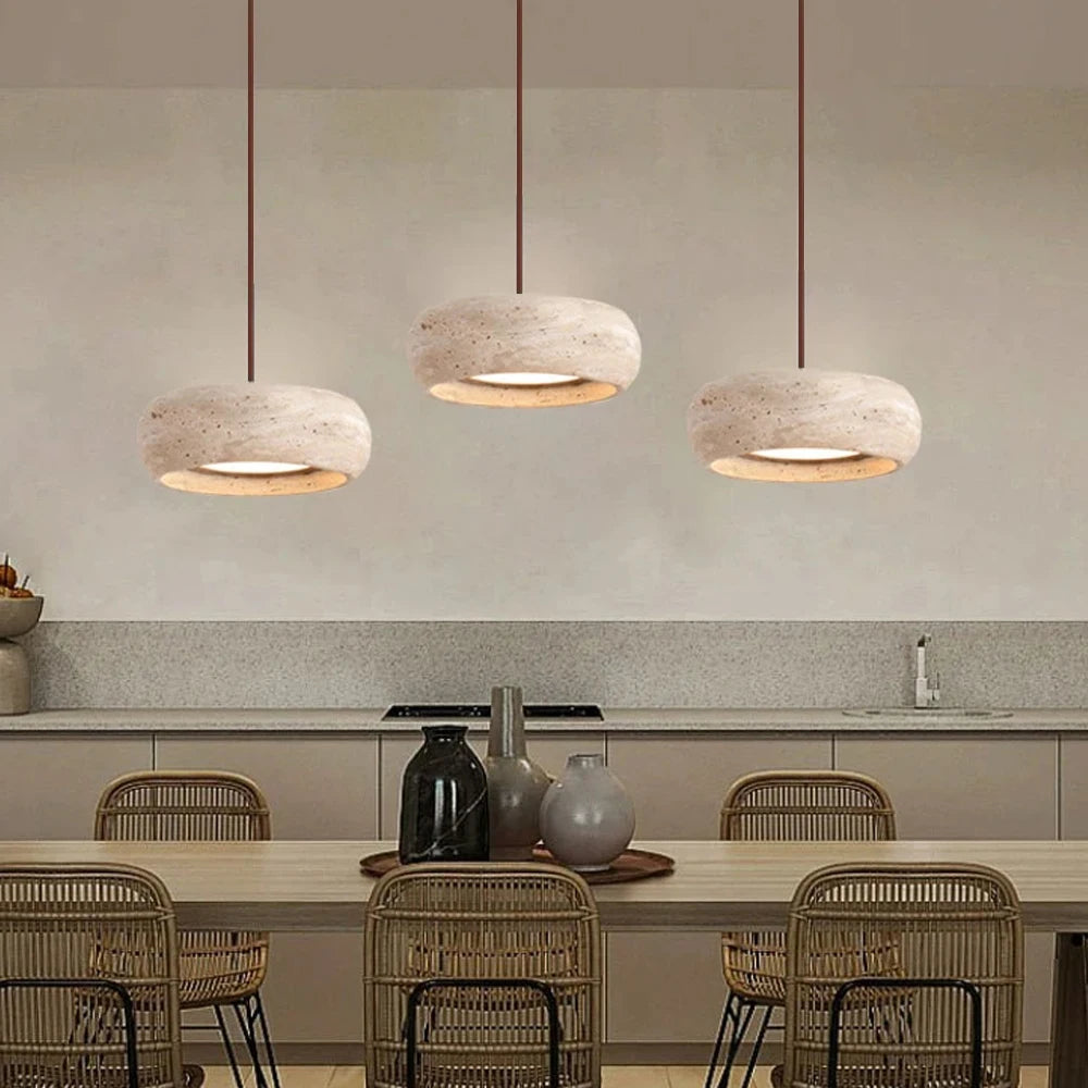 Modern Travertine Pendant Lights Cave Stone LED Pendant Lamp Restaurant Bar Home Chandelier Creative Cream Style Hanging Lamps