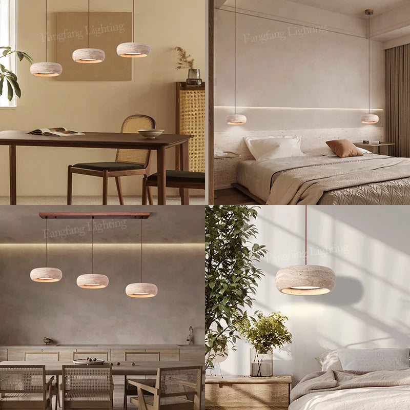 Modern Travertine Pendant Lights Natural Yellow Stone LED Hanging Lamps Indoor Decor Lighting Bedroom Dining Room Bar Study