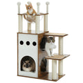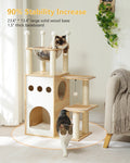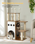 Modern Wood Cat Tree for Indoor Cat Tower Heavy Duty with Scratch Post for Extra Tall Condo Sturdy Frisco Castle with Clear Bowl