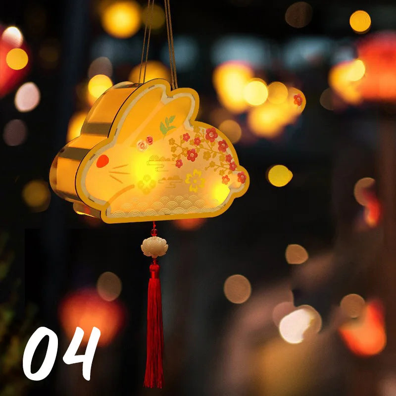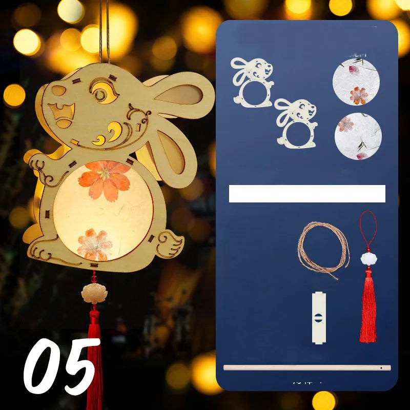 Moon Festival Rabbit Light Mid Autumn Festival Lantern Making DIY Material Retro Portable Palace Lanterns Flower Paper Lantern