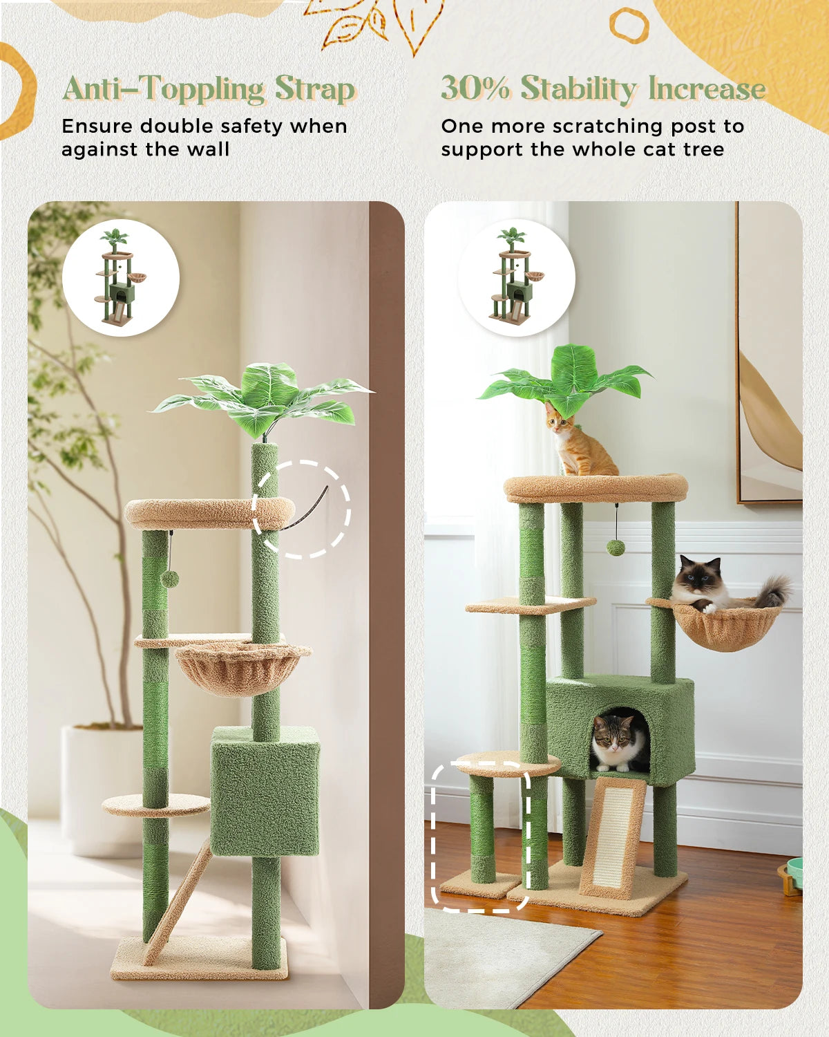 Multi-Level Cat Tree for Indoor Cats, Large Condo, Sisal Scratching Posts, Hammock & Perch, Fresh Cactus Design, Sturdy