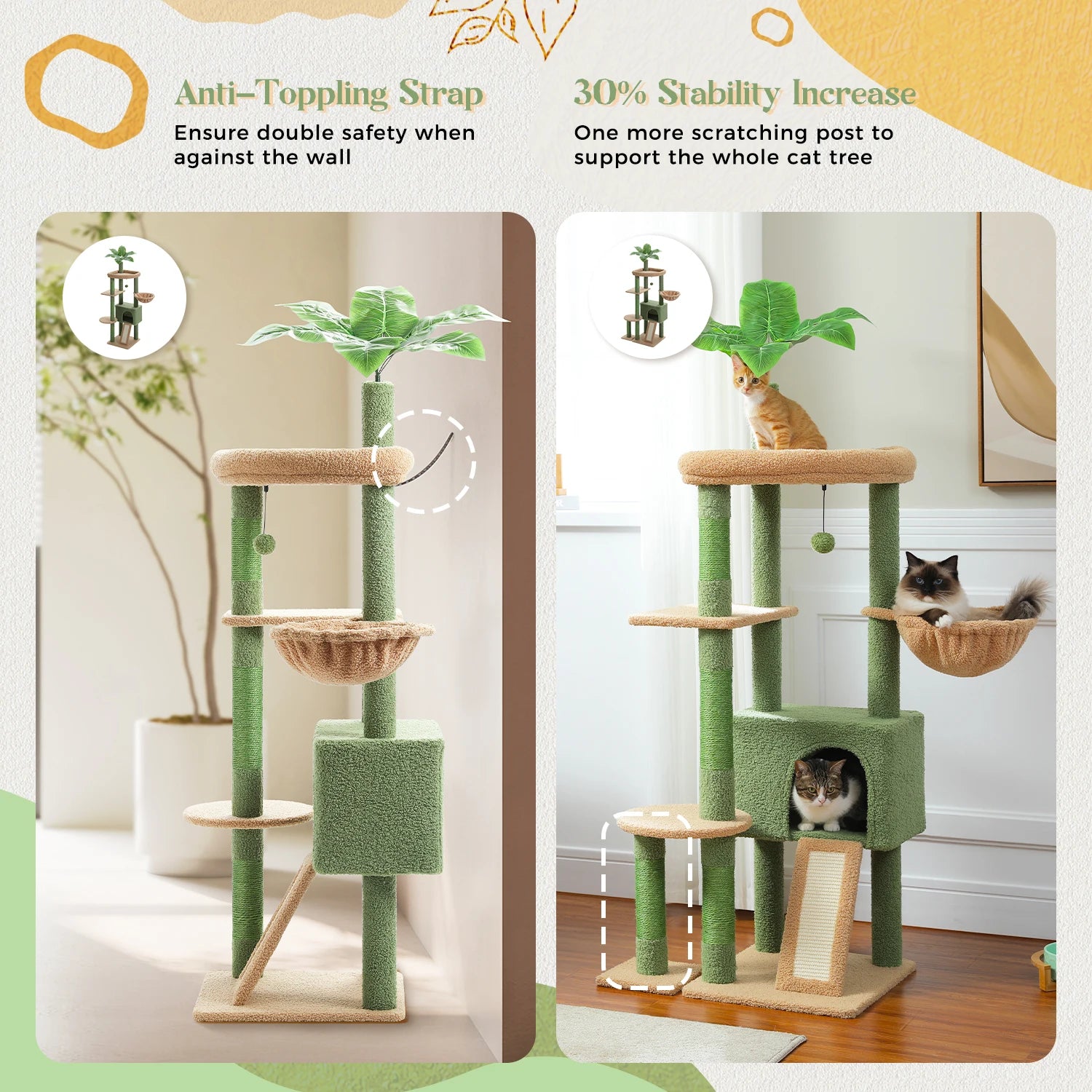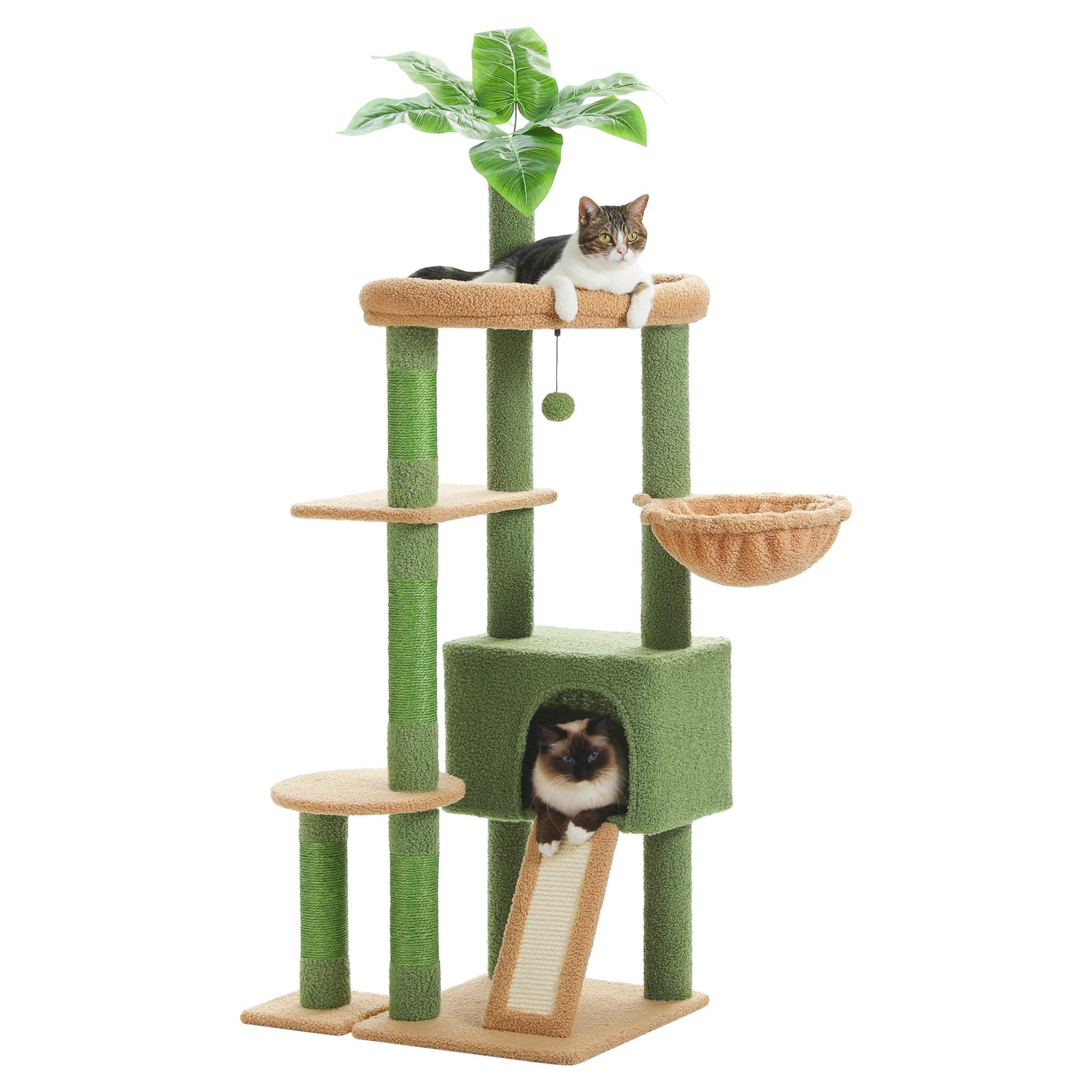 Multi-Level Cat Tree with Large Condo, Sisal Scratching Posts, Hammock & Perch and Fresh Cactus Design for Indoor Cats