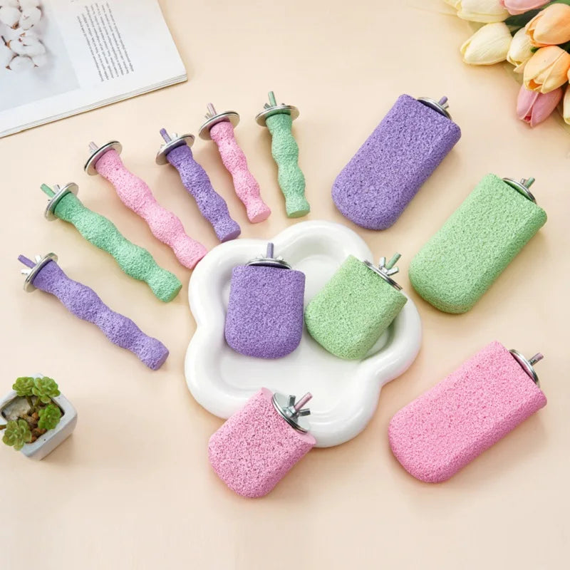 Natural Wood Platform Bird Nail Trimming Perches, Paw Grinding Stick for Parakeet Cockatiels, Parrot Stand, Conure Stand