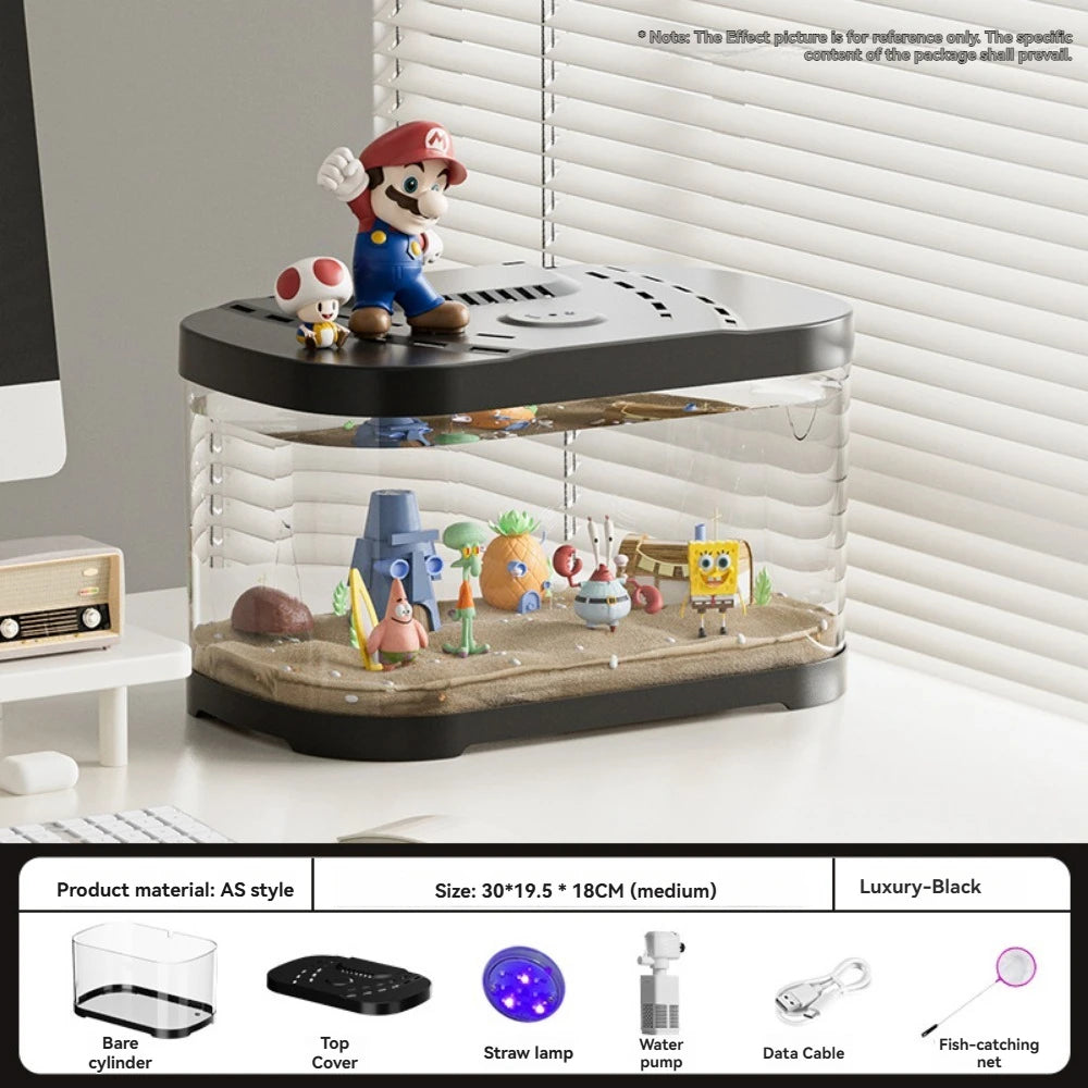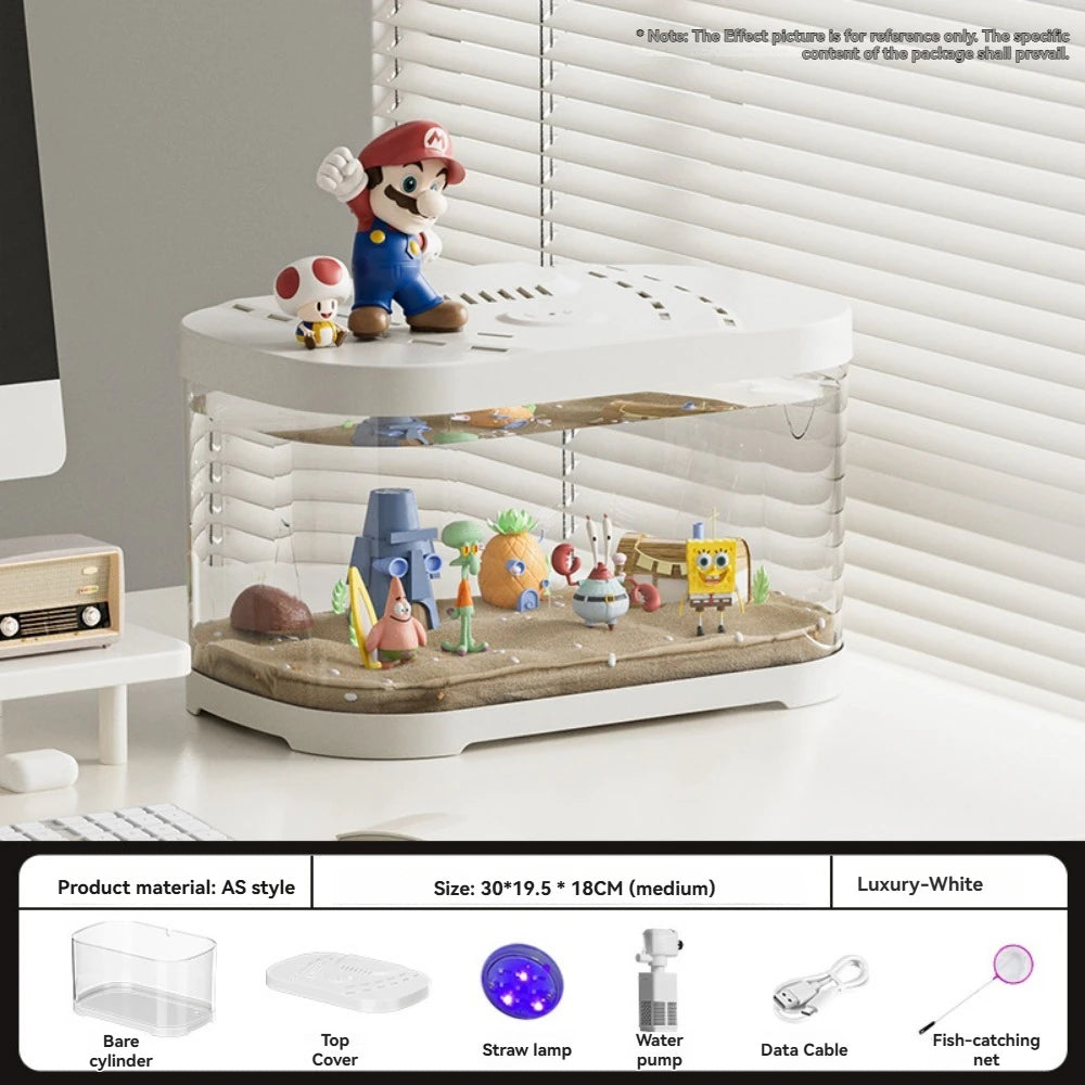New goldfish jar with filter ecological jar household living room landscaping aquarium turtle jar transparent plastic jar