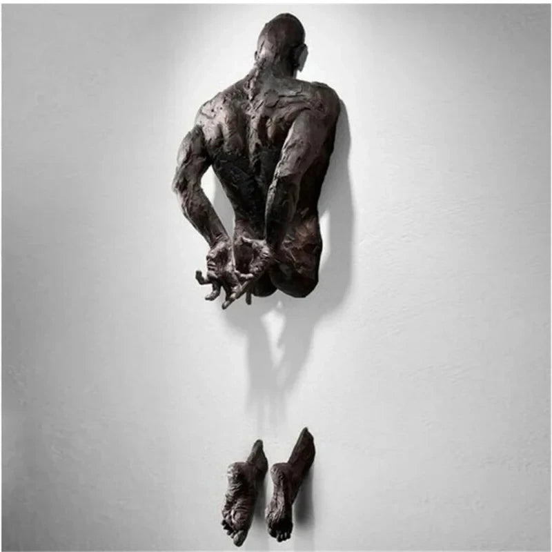 New Imitation Copper Wall Decor Abstract Character Resin Rock Climbing Man Statue Sculpture Background Wall Art 3D Through Wall