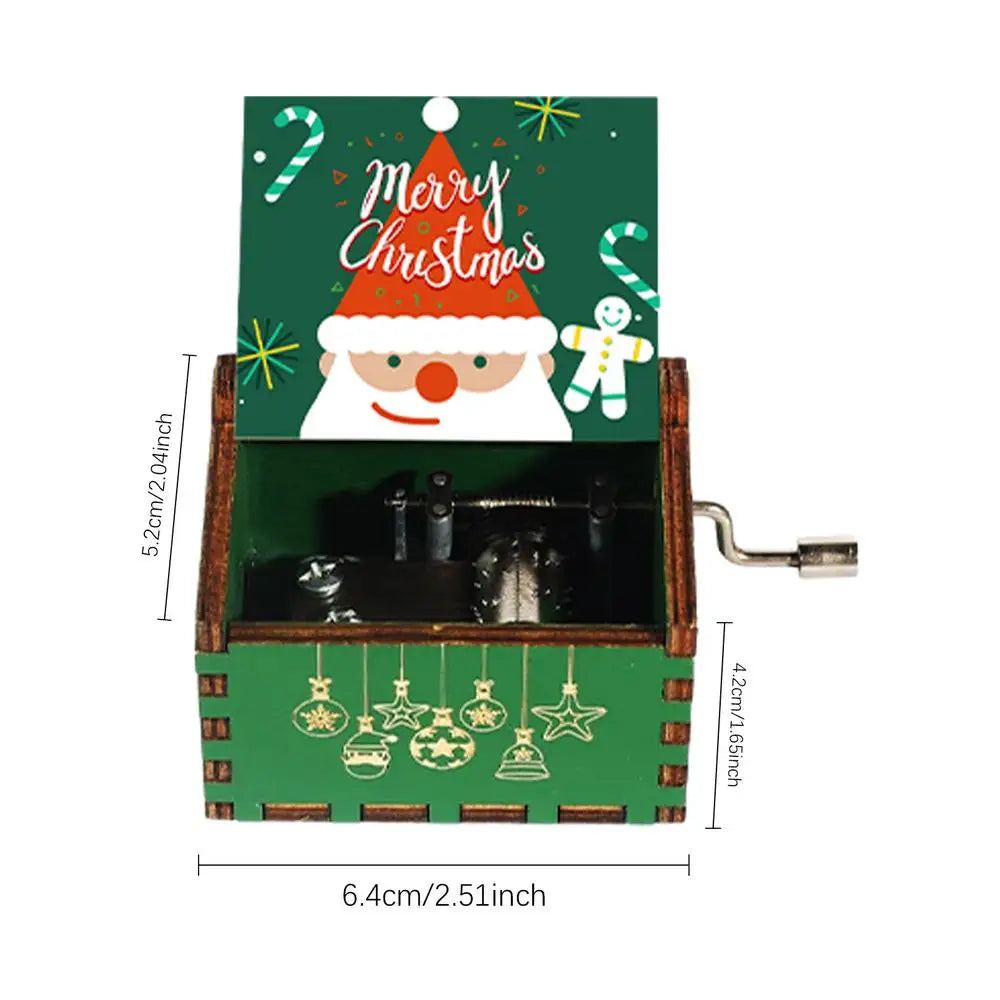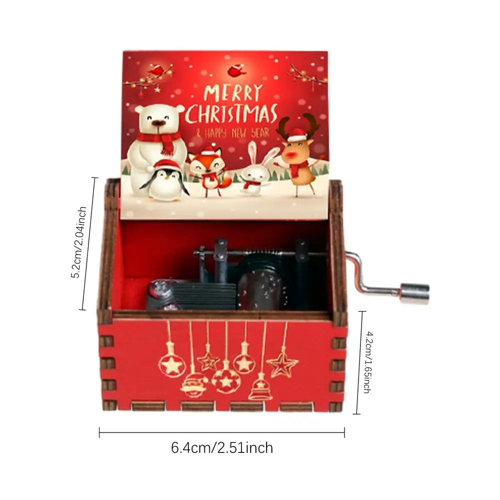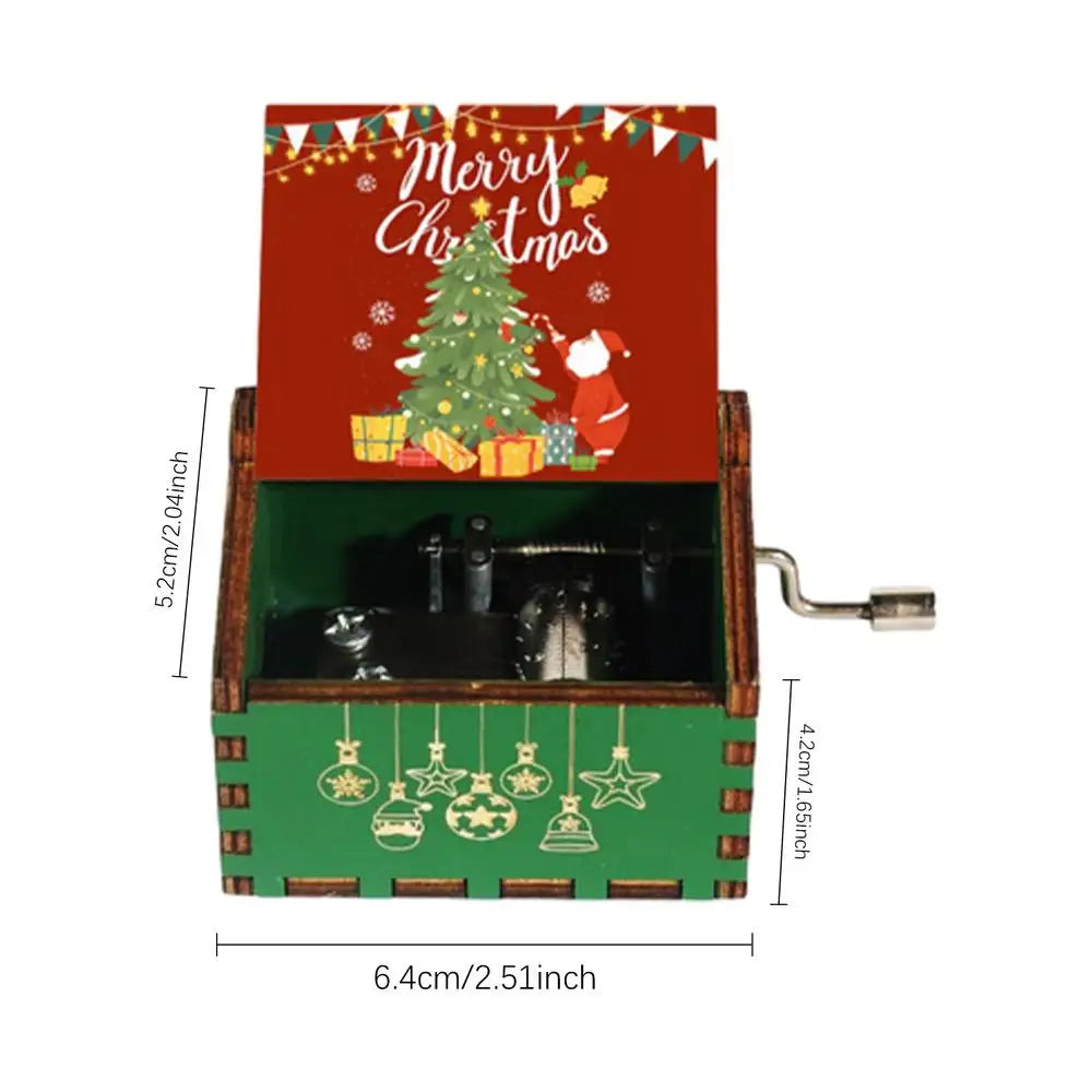 New Wooden Hand Crank Music Box Classical Carved Merry Christmas Theme Music Box Halloween Christmas New Year Birthday Gifts