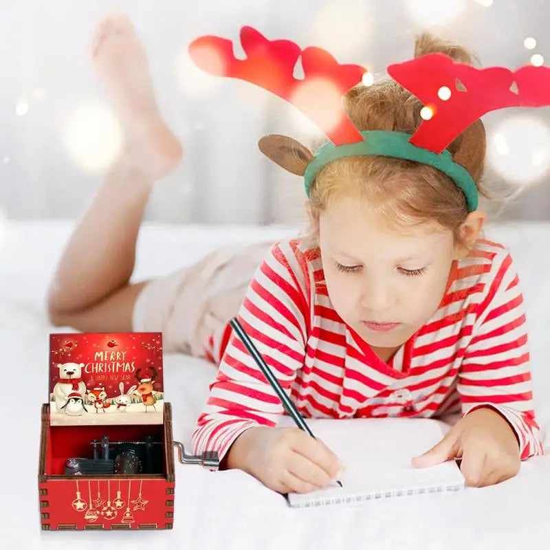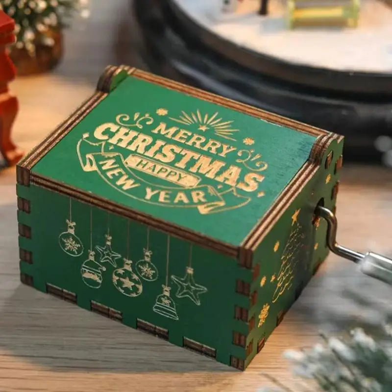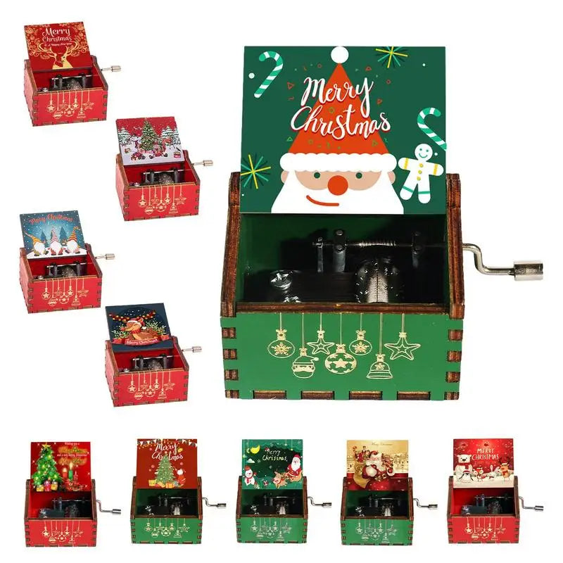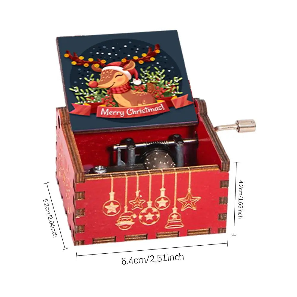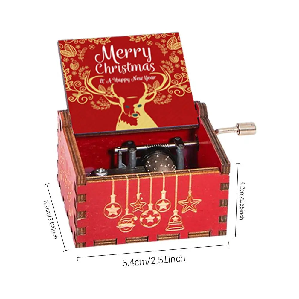 New Wooden Hand Crank Music Box Classical Carved Merry Christmas Theme Music Box Halloween Christmas New Year Birthday Gifts