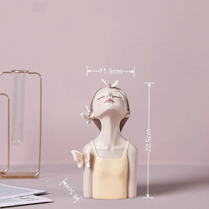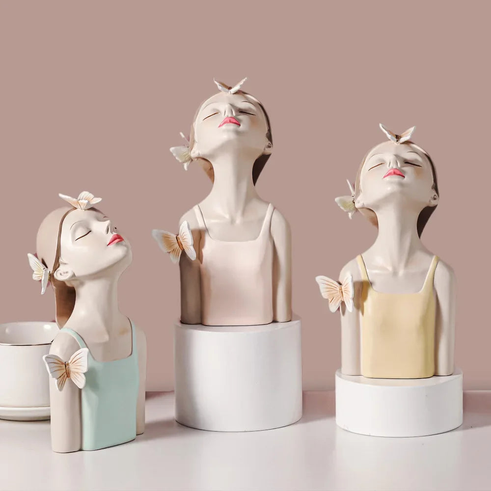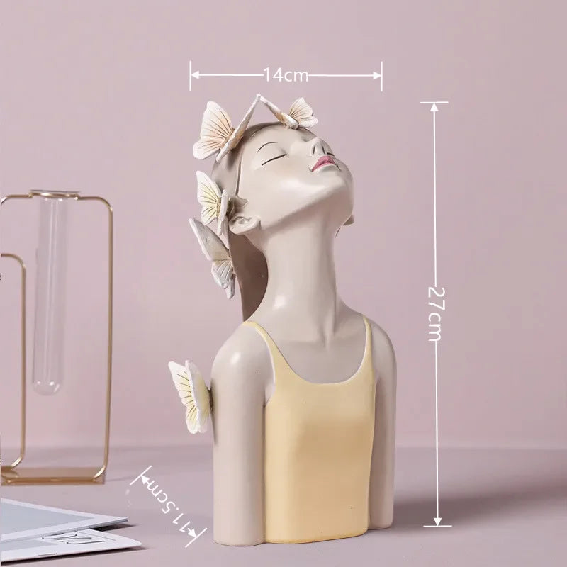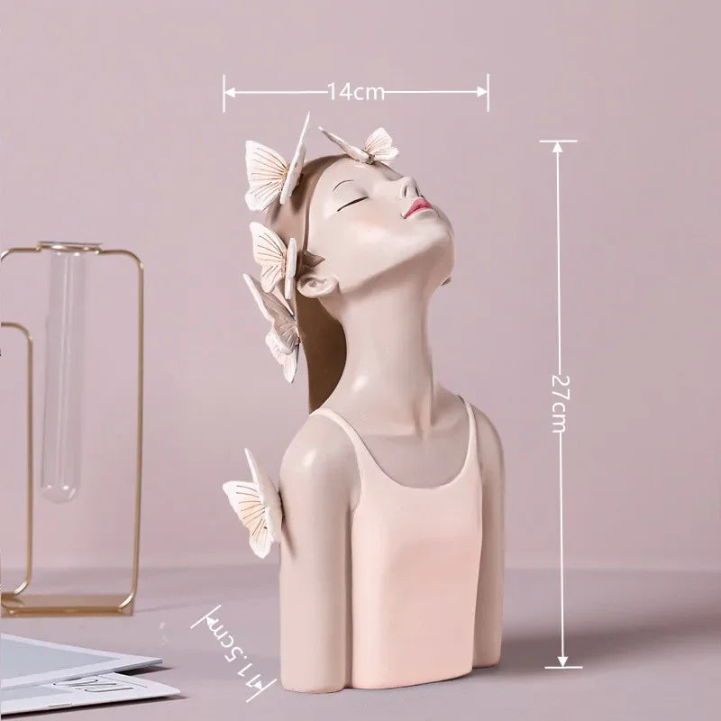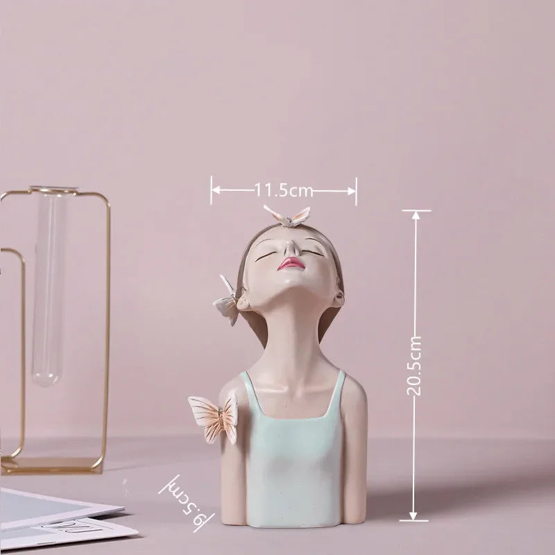Nordic Butterfly Fairy Girls Resin Ornaments with Metal Tray,Home Decor Accessories,Kawaii Crafts Statue,Tabletop Figurines Gift