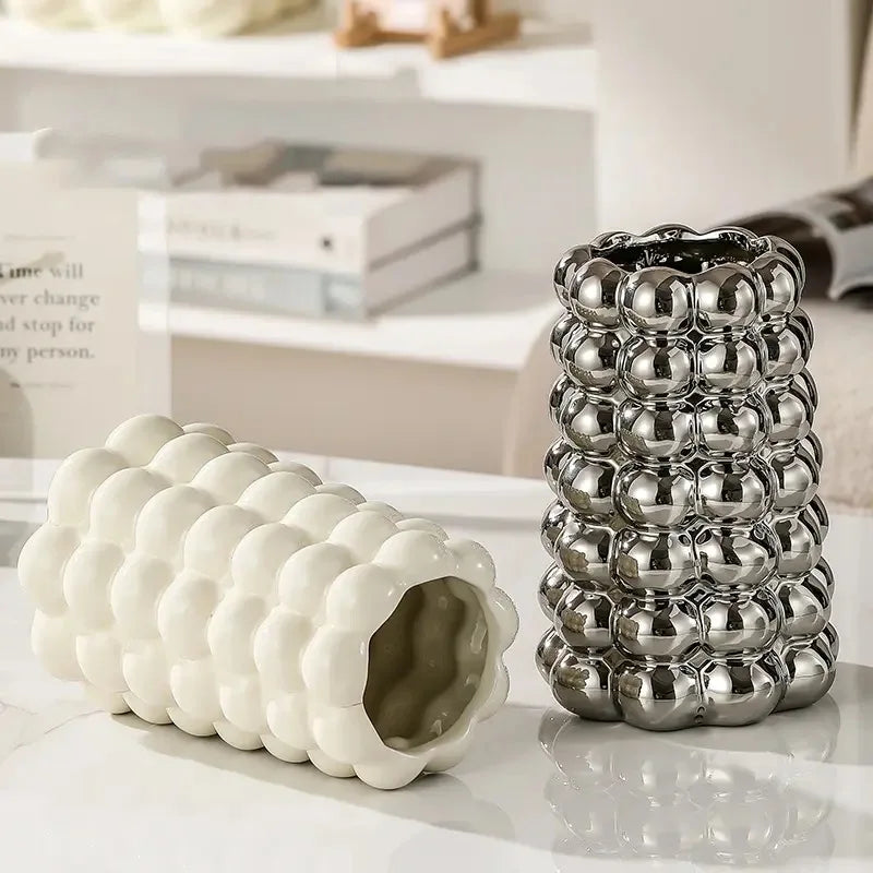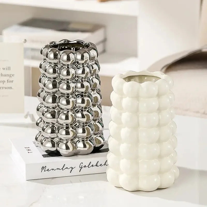 Nordic Ceramic Vase Ornaments Milk White Silver Vases Dinner Table Flower Arrangement Home Room Decor