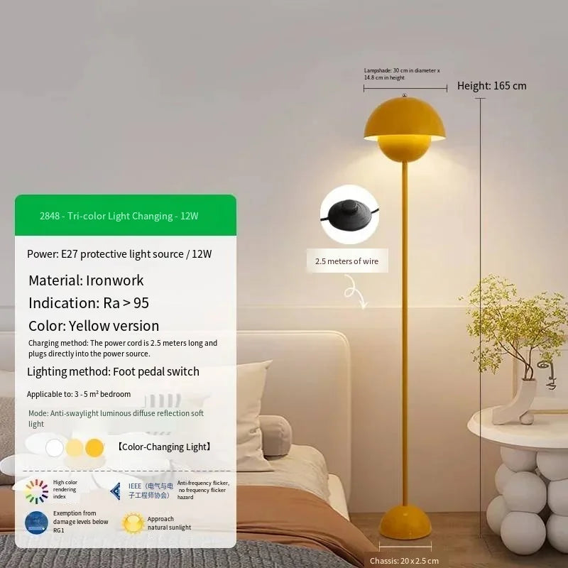 Nordic Modern Mushroom LED Floor Lamp Living Room Sofa Decoration Retro Style Light Luxury Bedroom Bedside Flower Bud Floor Lamp