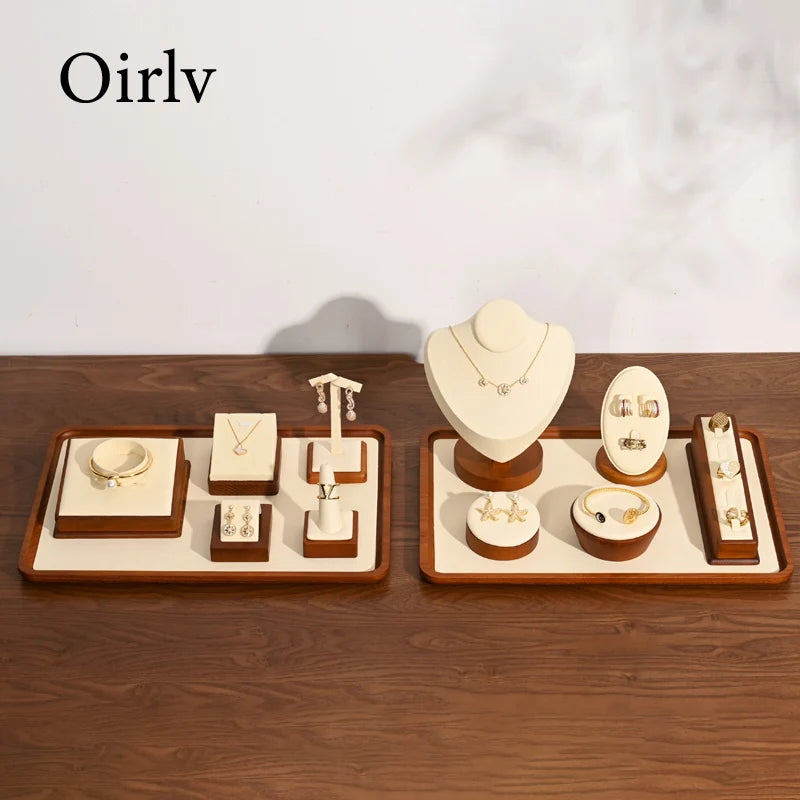 Oirlv Solid Wood Jewelry Tray Bracelet Ring Display Props Sets Jewelry Organizer Holder Necklace Display Stand Jewelry Plate
