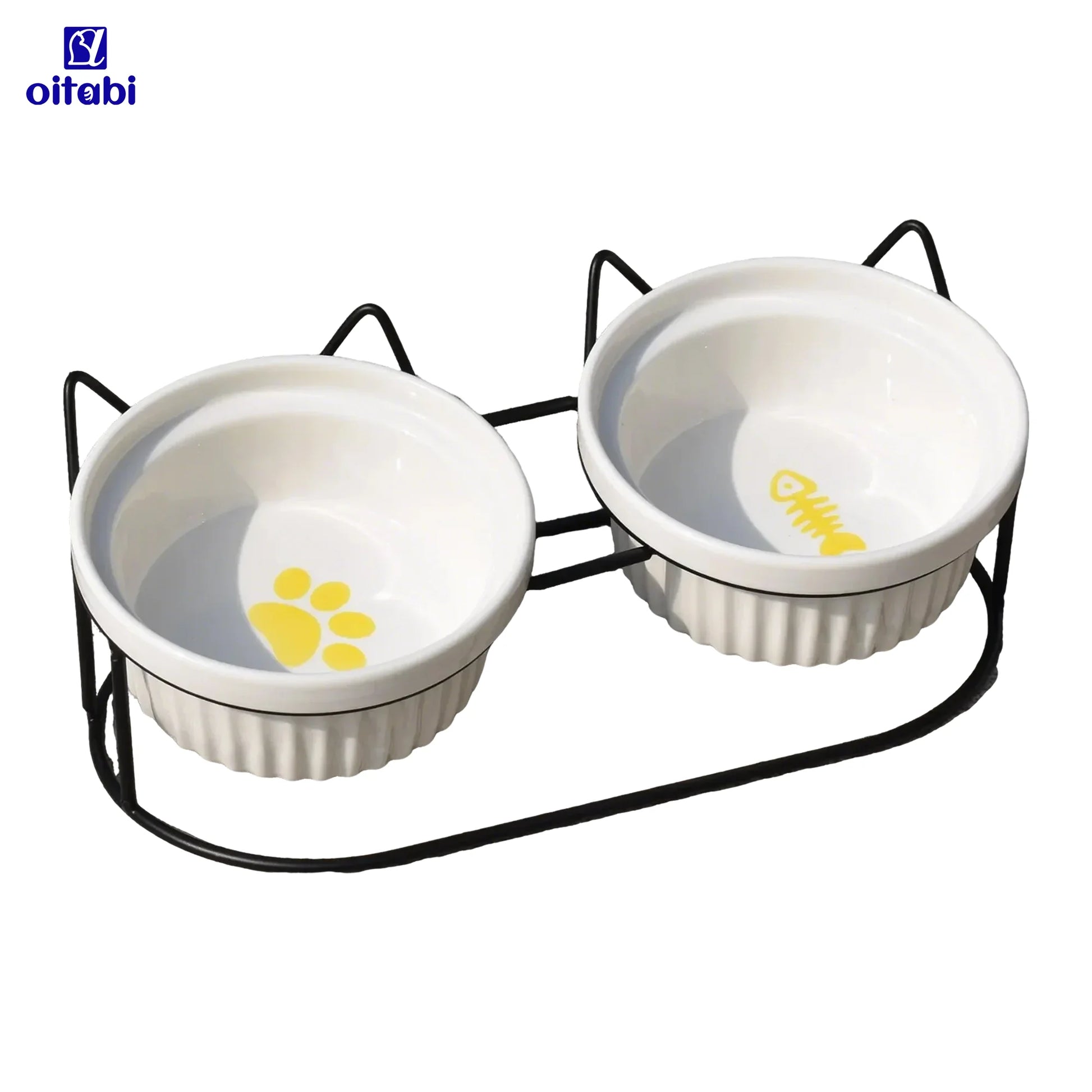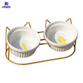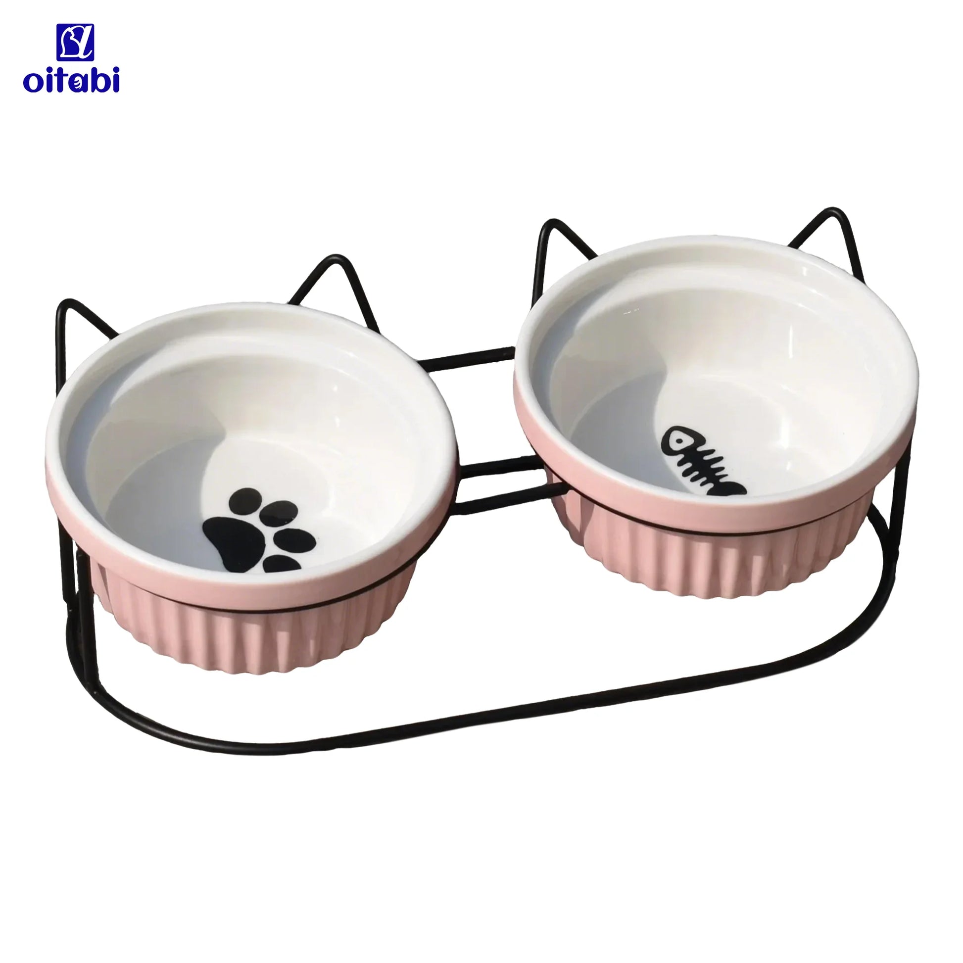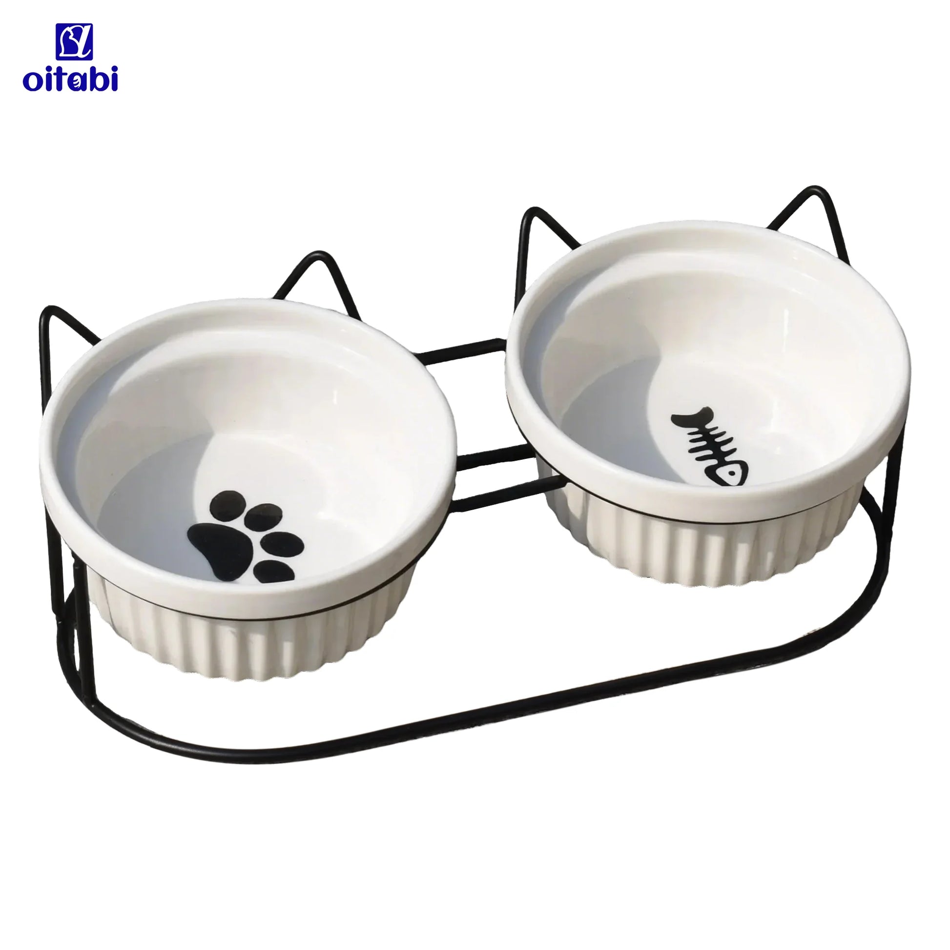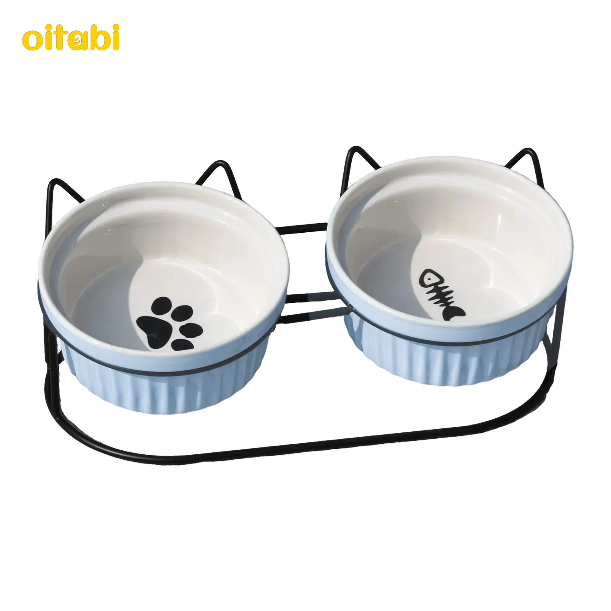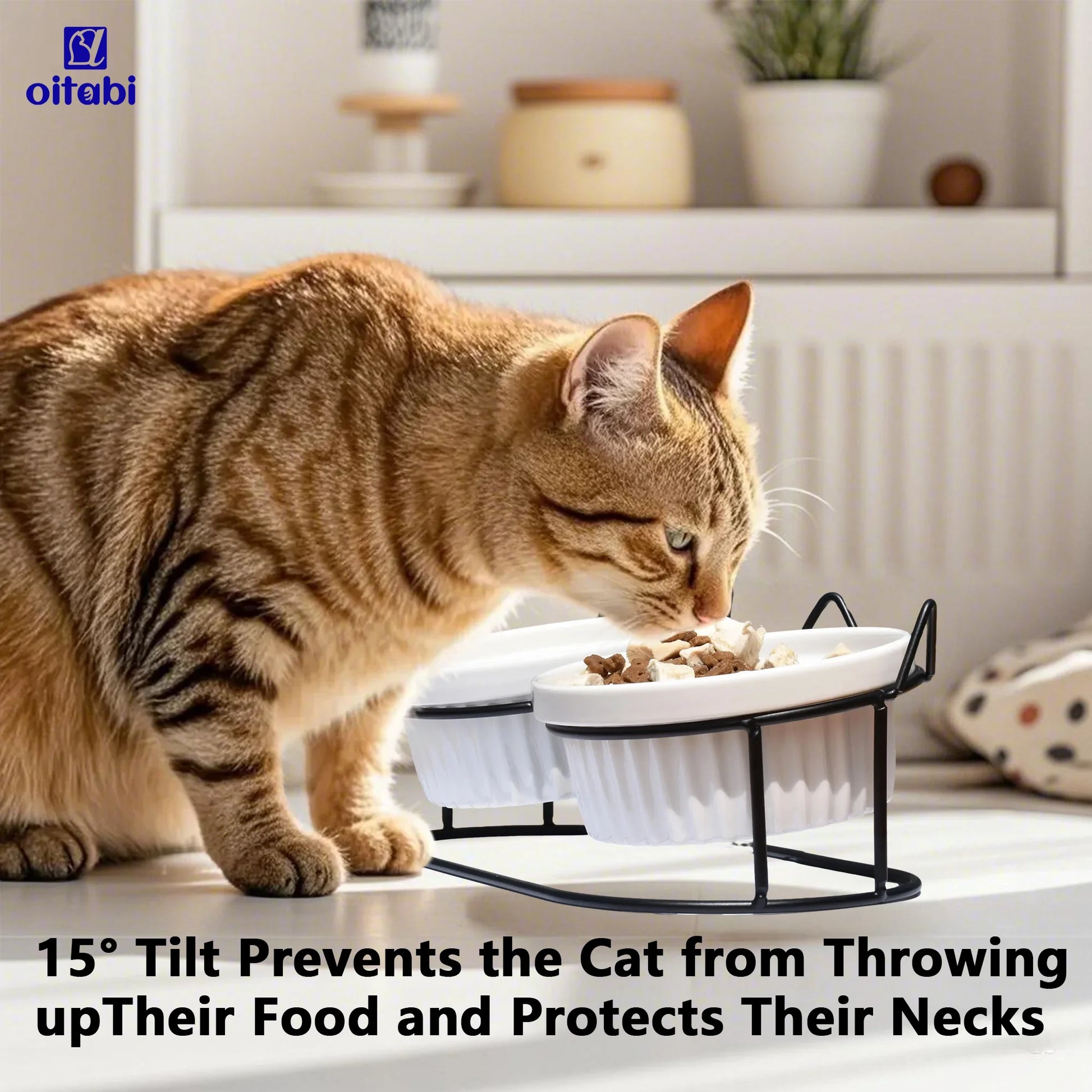 Oitabi Cat Bowls, Double Ceramic Pet Bowls with 15° Tilted Raised Stand for Food and Water, Anti Vomiting Cat Dish Feeder