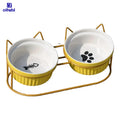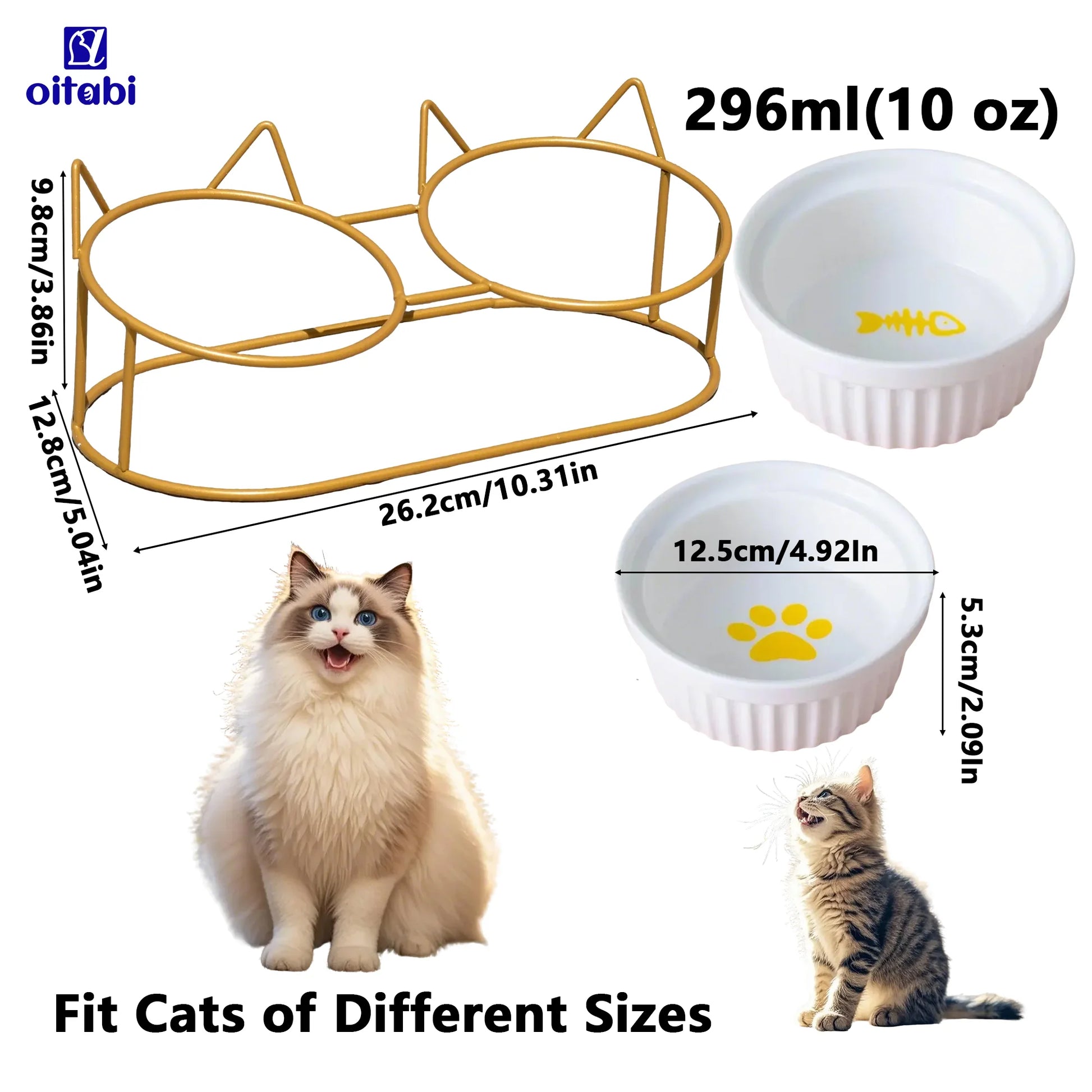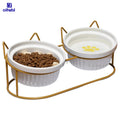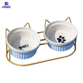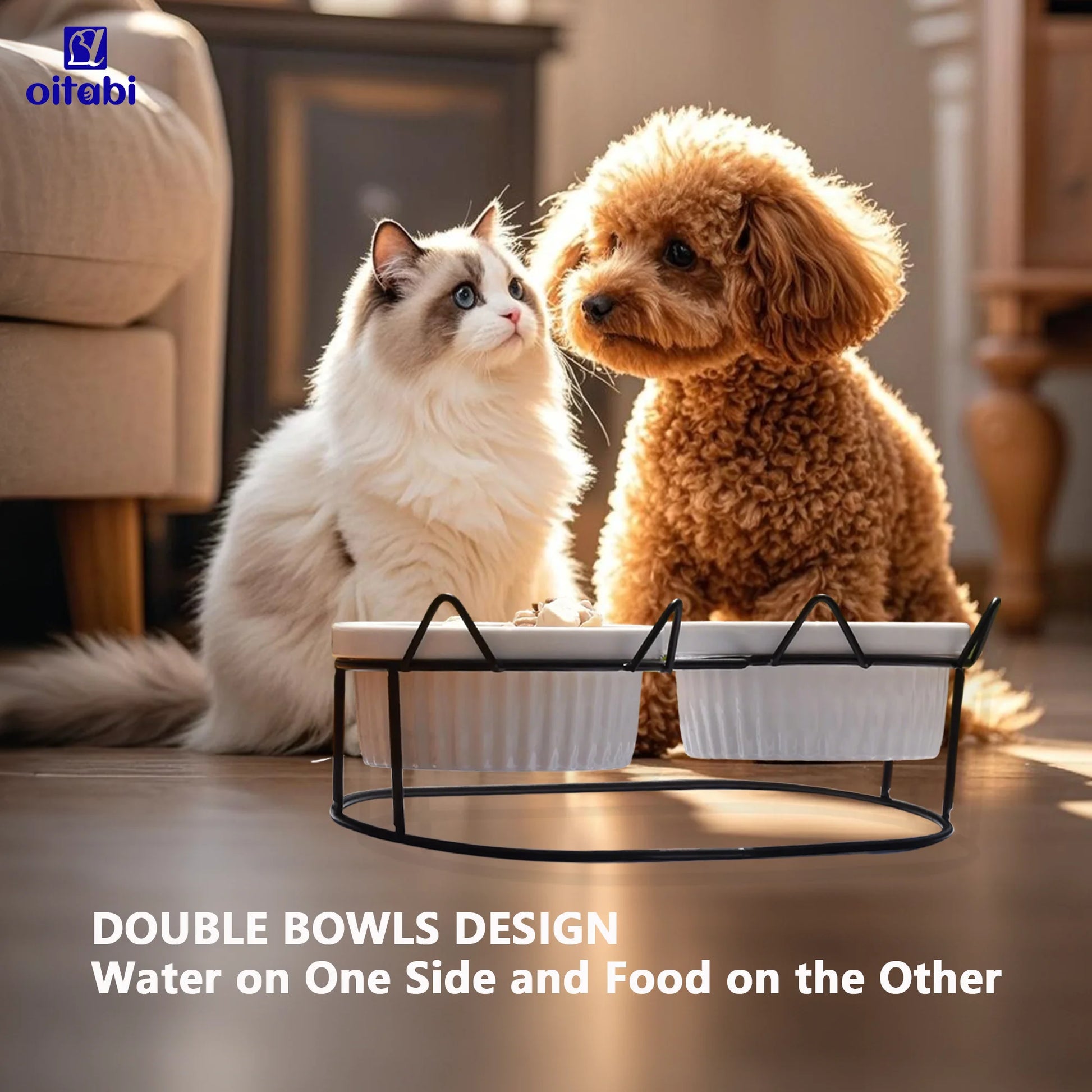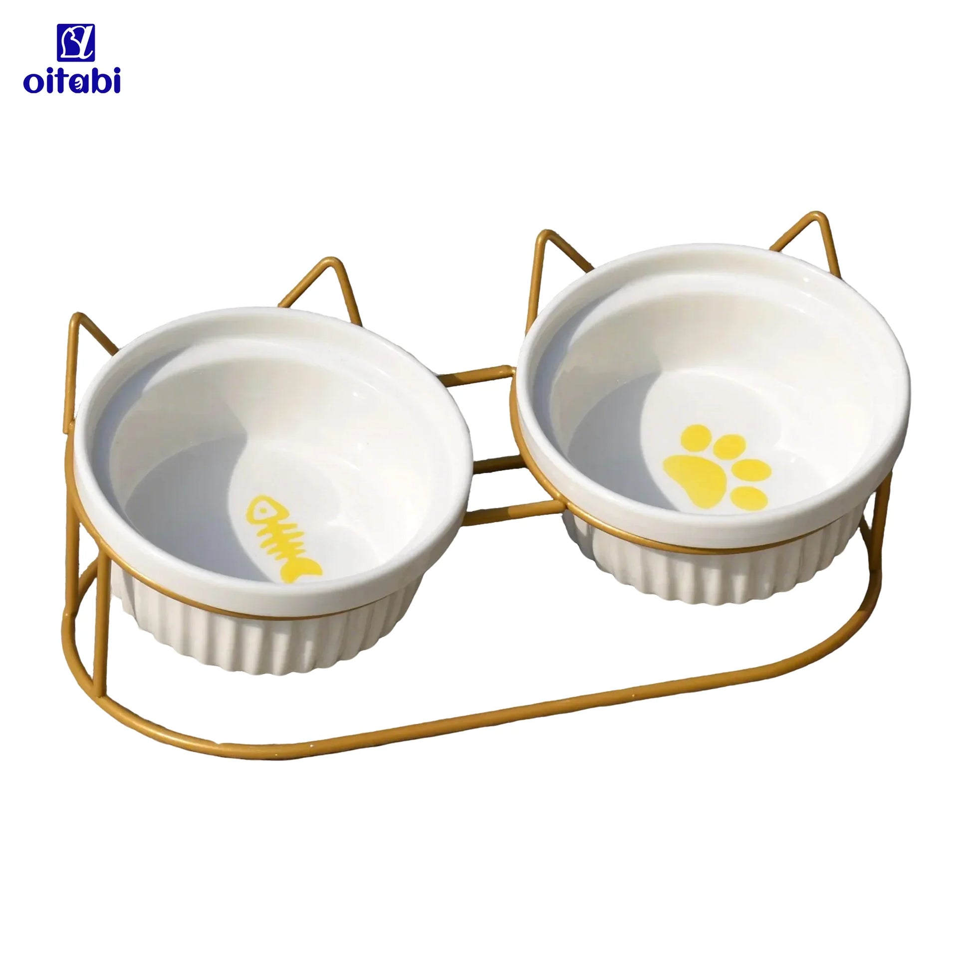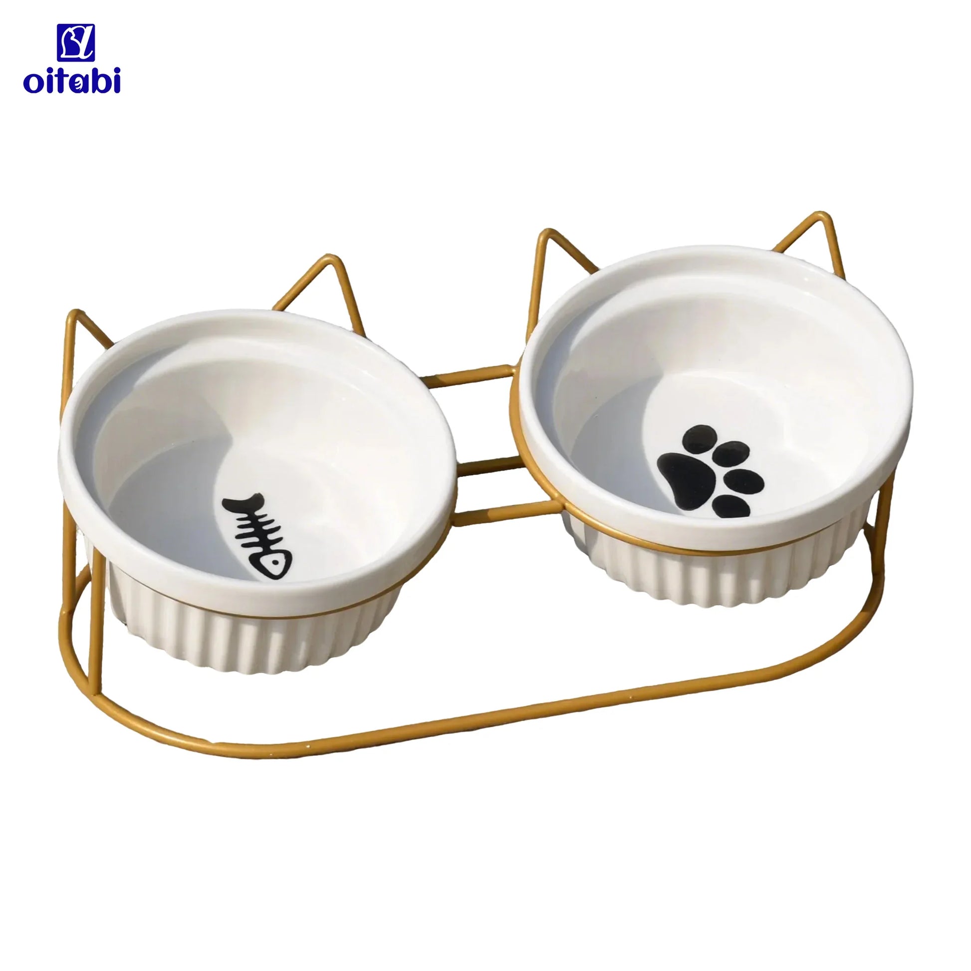 Oitabi Cat Bowls, Double Ceramic Pet Bowls with 15° Tilted Raised Stand for Food and Water, Anti Vomiting Cat Dish Feeder