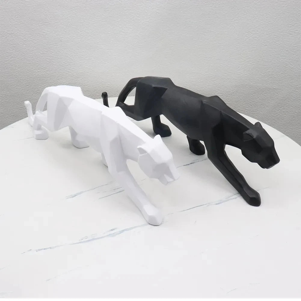 Panther Statue Animal Figurine Abstract Geometric Style Resin Leopard Sculpture Home Office Desktop Decoration Crafts Gifts