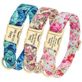 Personalized Floral Dog Collar and Leash Set Custom Small Medium Large Dog Pet ID Collar Lead Flower Print Dog Engraved Collars