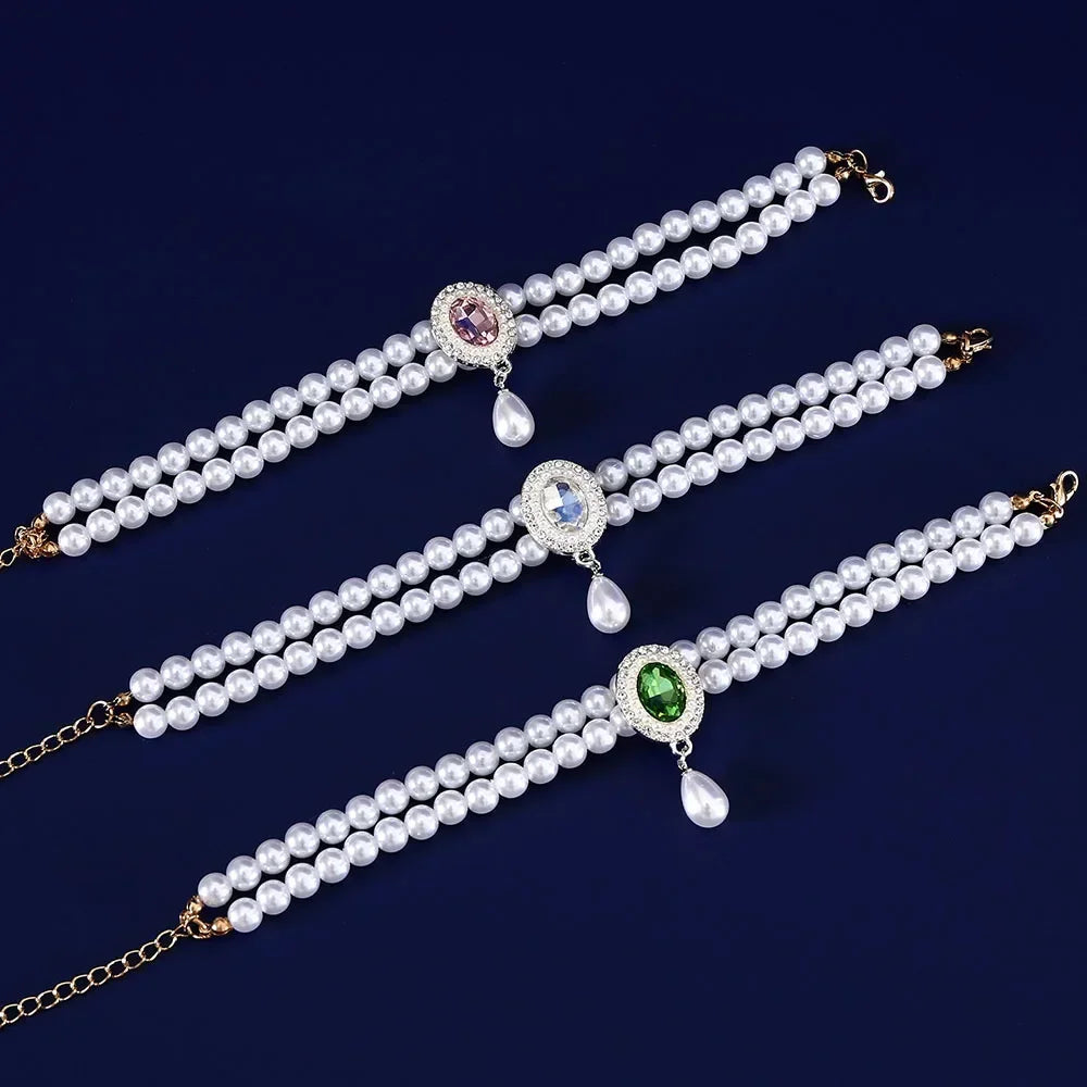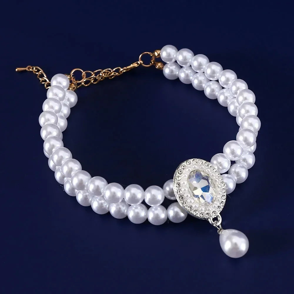 Pet Collar with Double Row Pearls Pendant Small Dogs Cat Pearl Necklace Fashion Accessories for Kitten Puppy Wedding Accessories